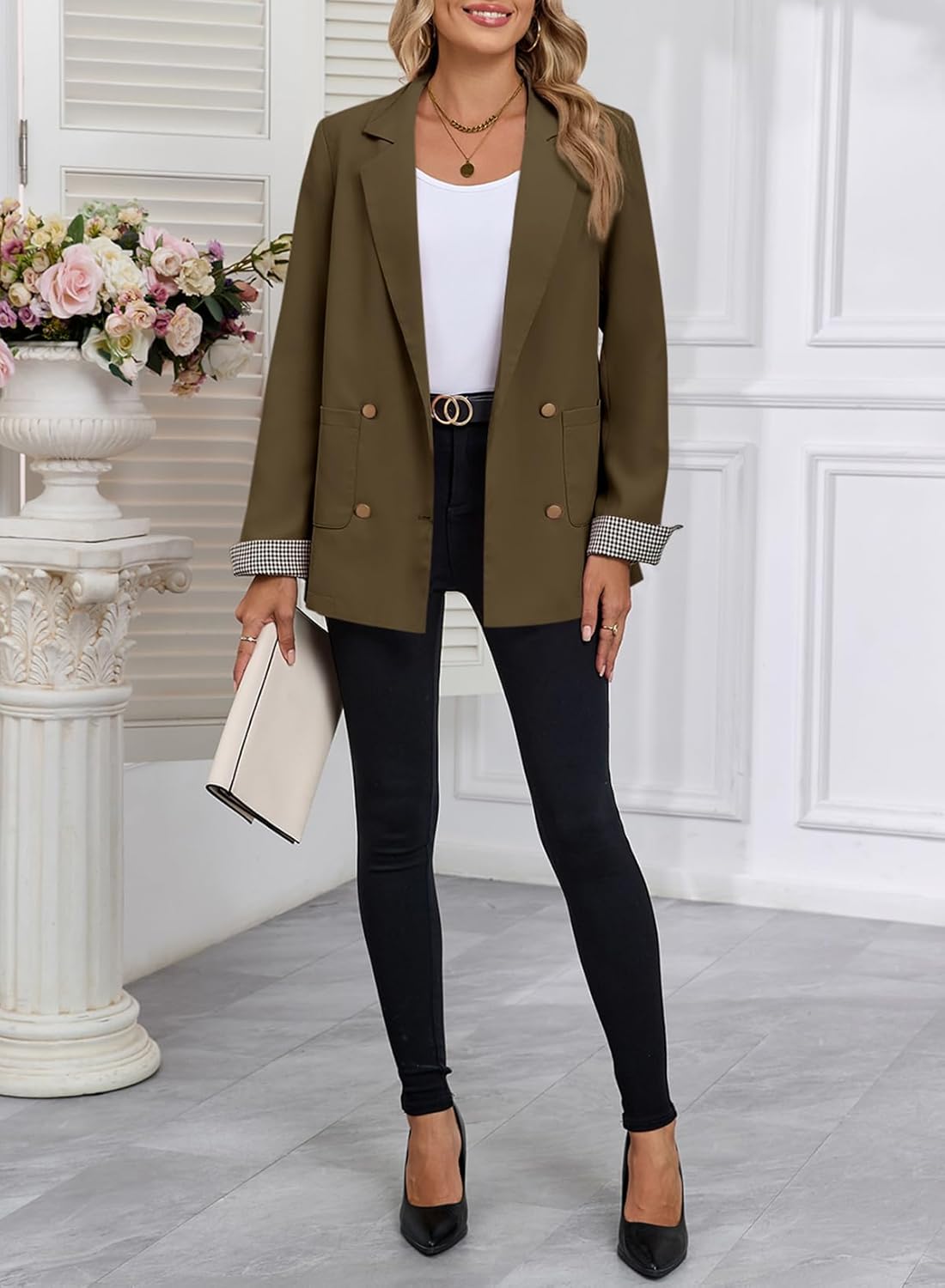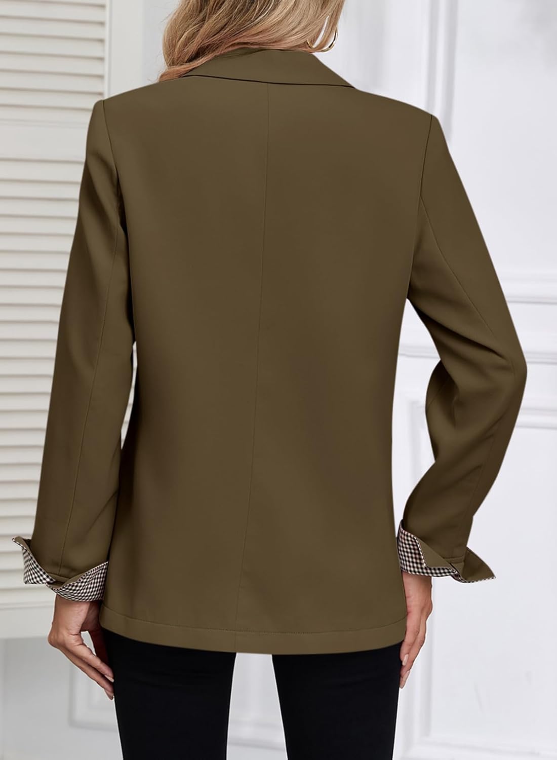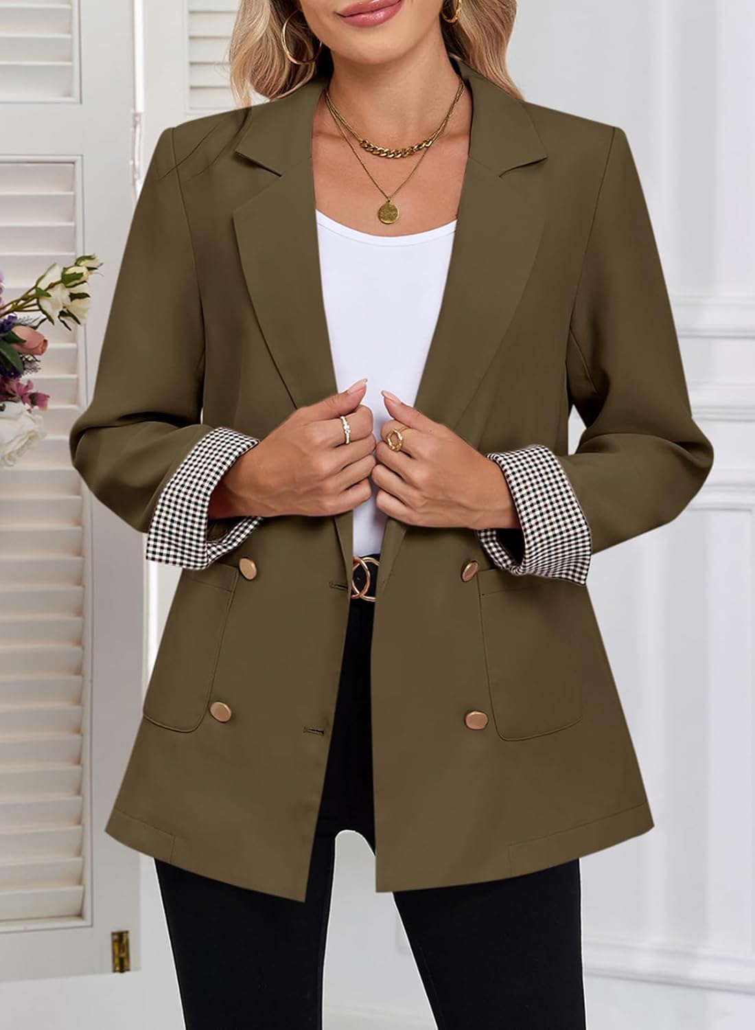 Happy Sailed Womens Blazers Plaid Cuff Double Breasted Open Front Business Casual Office Suit Jackets Work Outfits