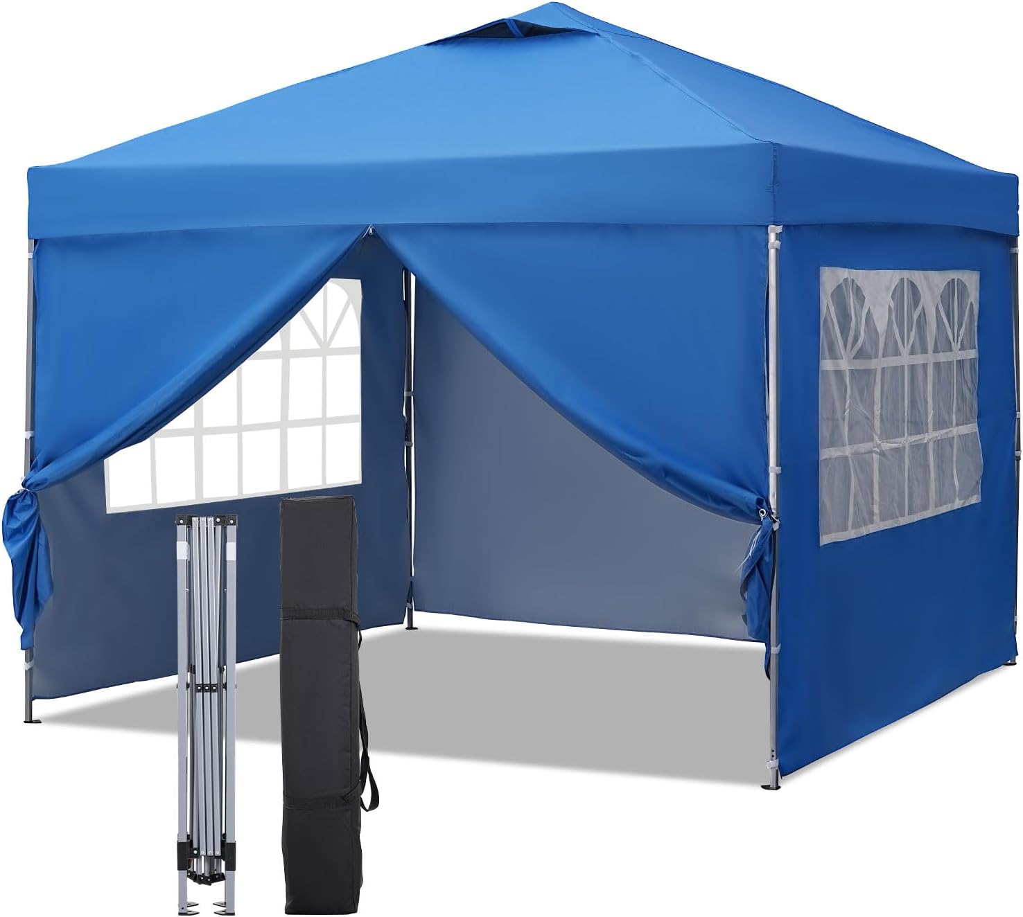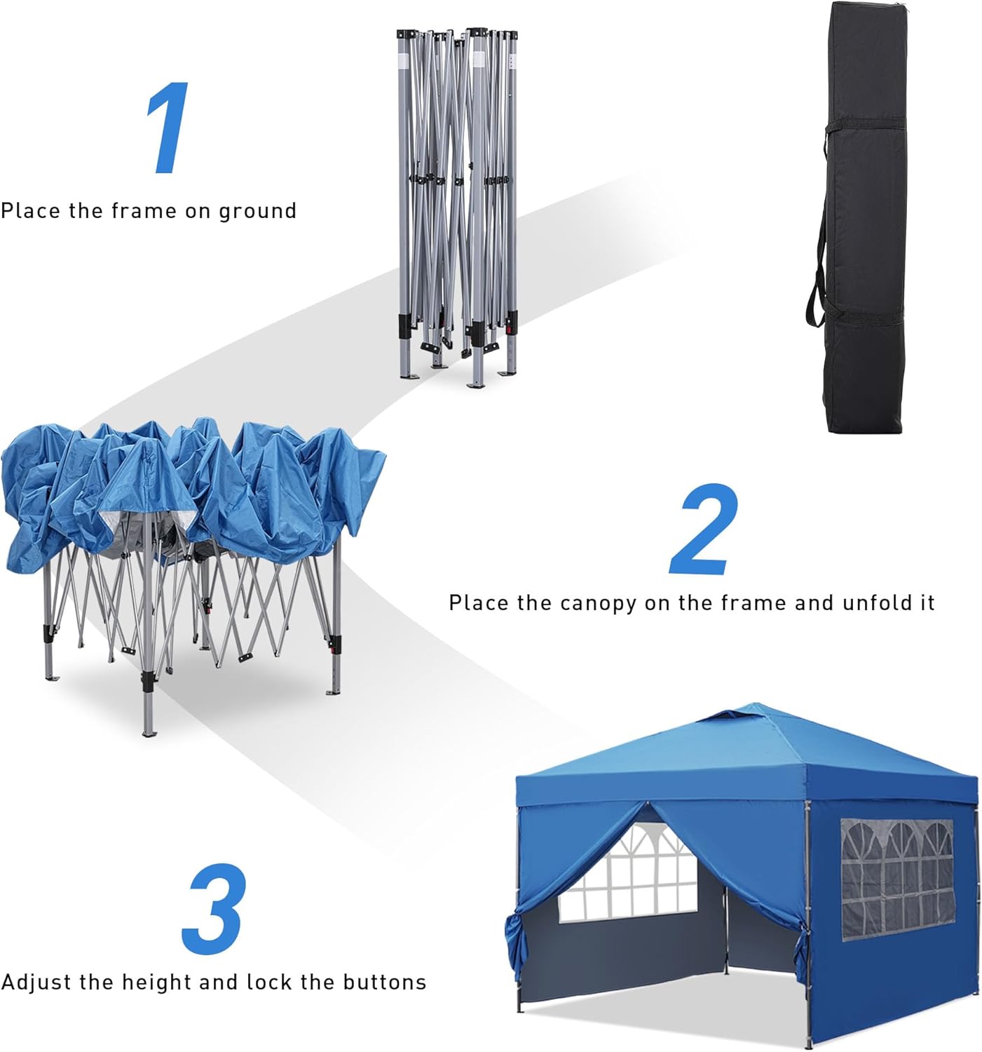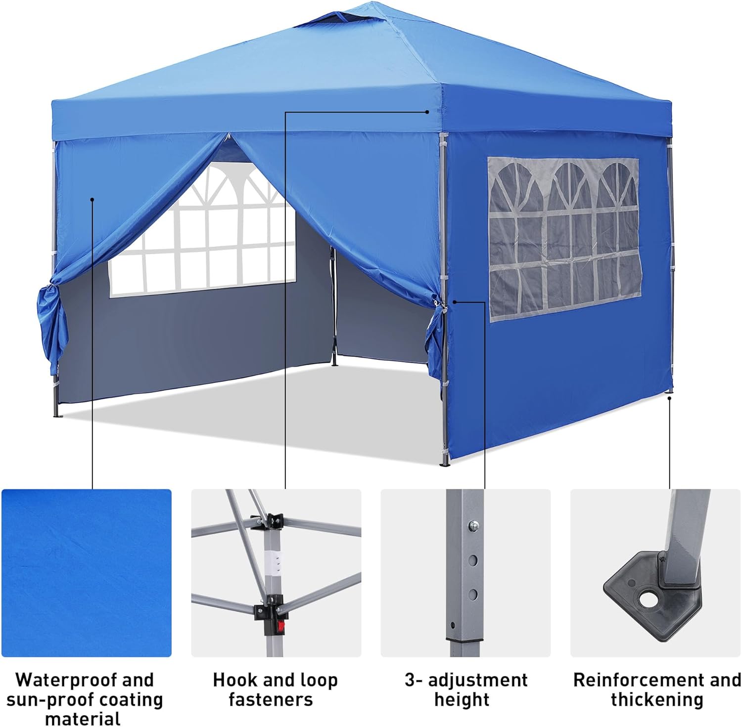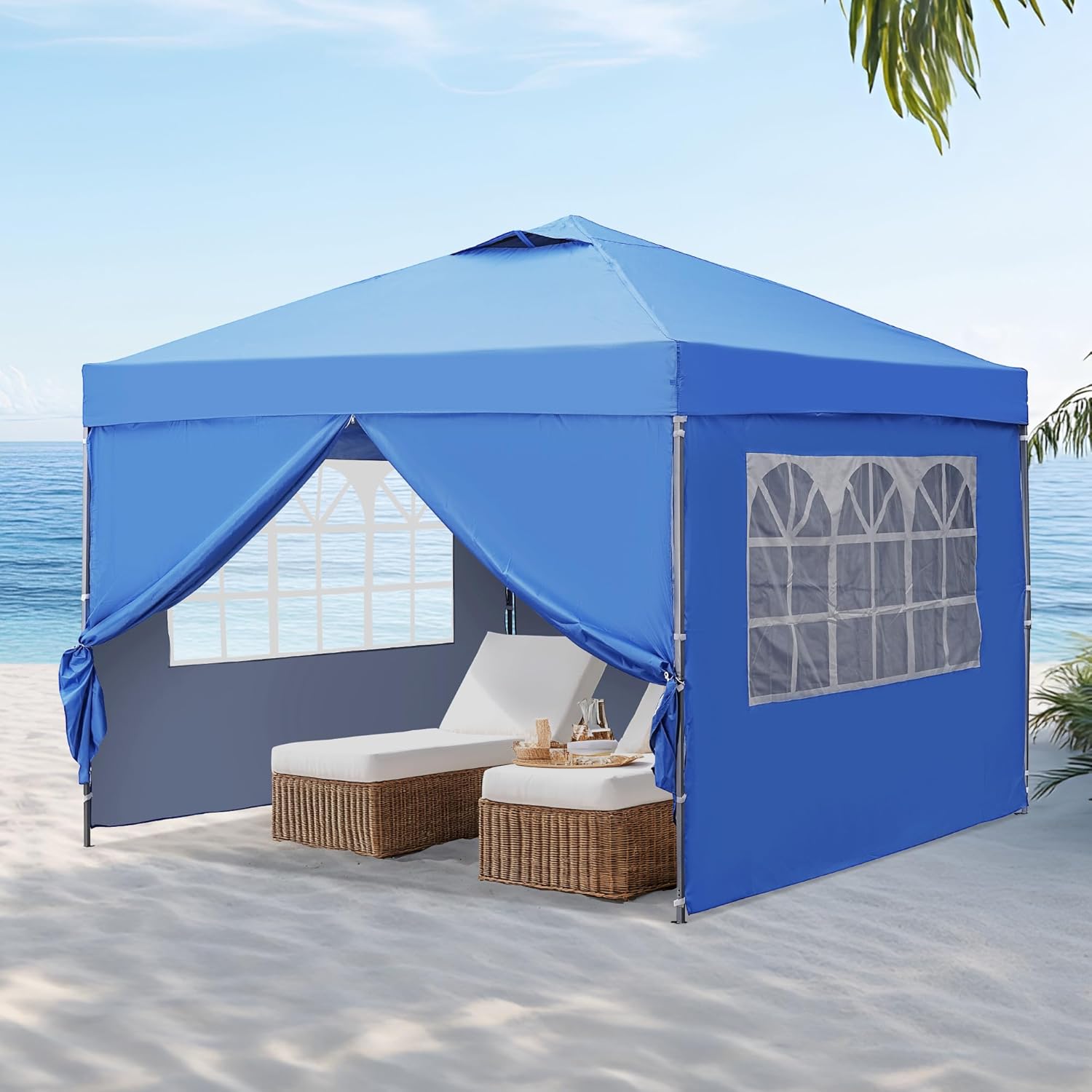 GDY 10x10ft Pop Up Canopy Tent with Sidewalls, Beach Tent, Easy Set up Gazebo for Events, Parties, Camping, Blue.