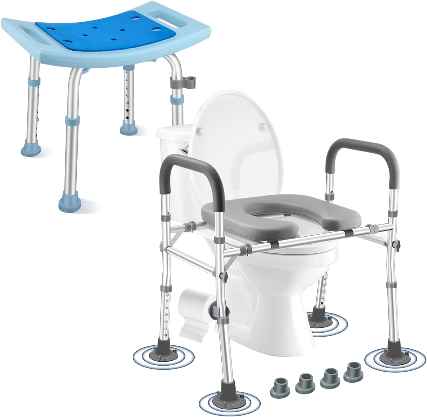 Non-Slip Armrest & Rubber Feet: The raised toilet seat features non-slip armrests for reliable support when sitting or standing. Rubber feet securely grip the floor preventing slipping or shifting during use and helping seniors and those with limited mobility sit and stand more safely and easily.