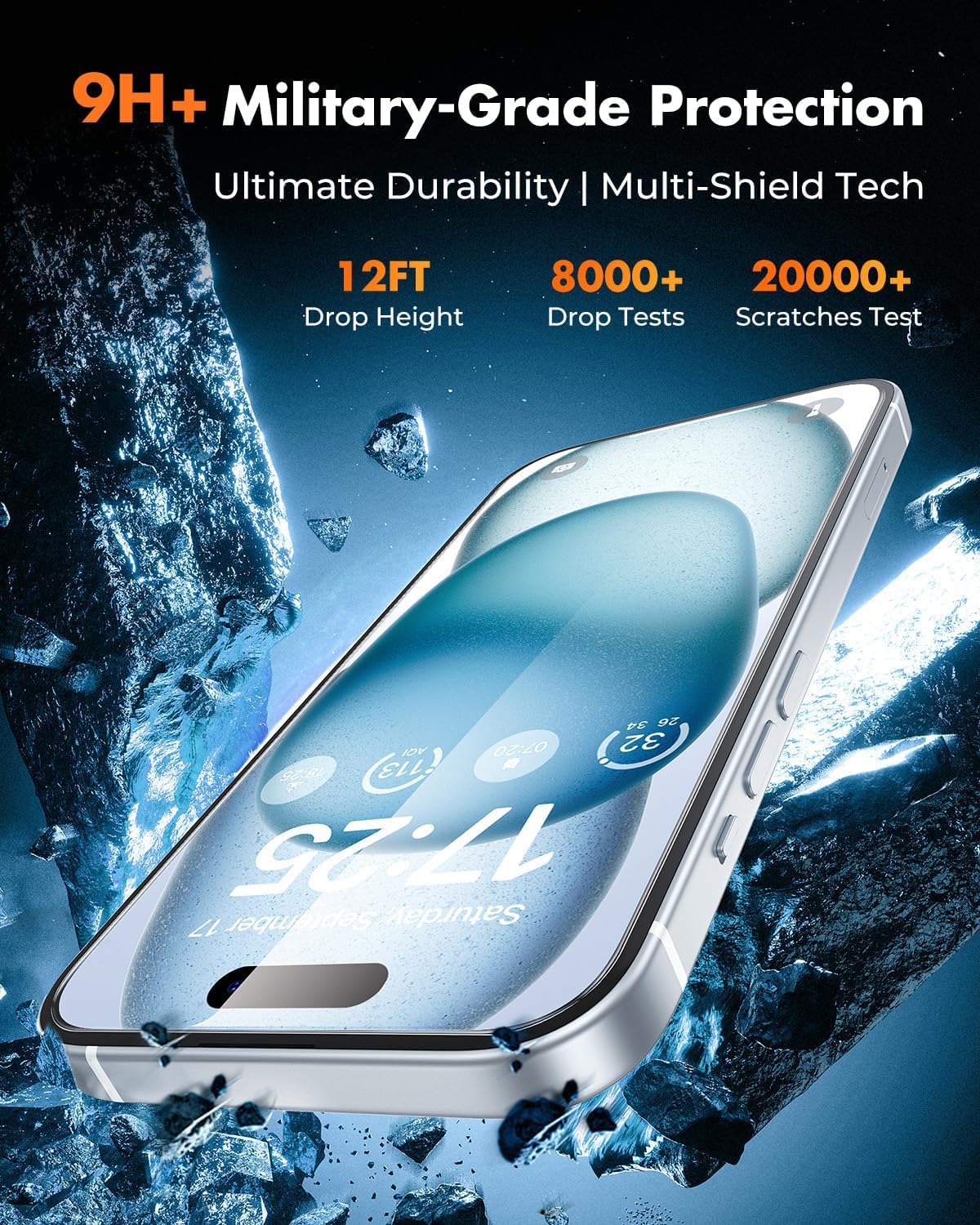 【Above 9H Hardness】This iPhone 15 screen protector and camera lens protector set(2+2 pack) is made from aerospace-grade tempered glass, strengthened at 400°C for 4 hours. With 0.33-inch thickness and 9H+ hardness military-grade, it’s 8x stronger than standard glass—resisting drops, cracks, and scratches. Built with enduring quality that stands the test of time—offering full protection for your iPhone display.