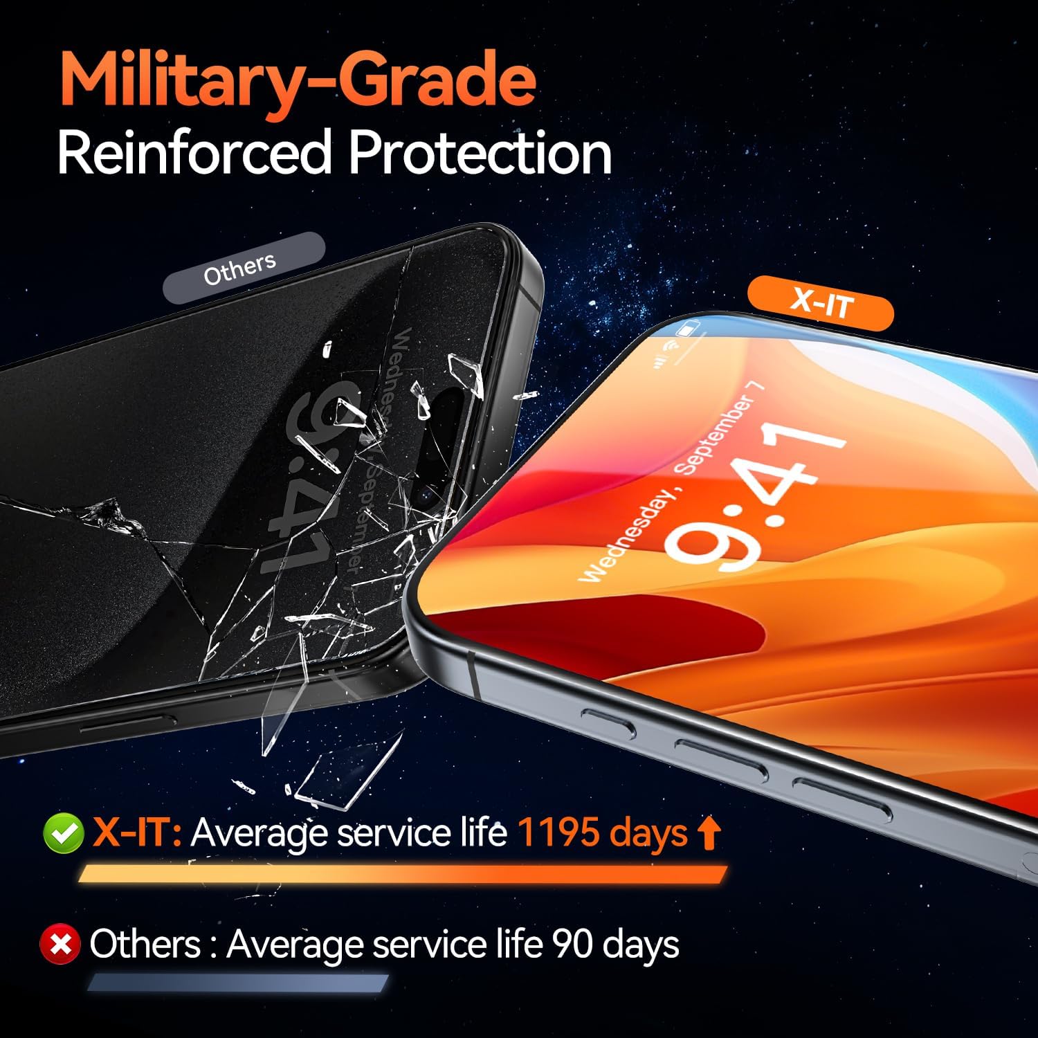 【Compatibility】 X-it screen protector is exclusively designed for iPhone 15 Pro Max, ensuring perfect alignment with the flat edges and display cutouts; For other models, visit the X-it store to find the exact screen protector for that matches your device
