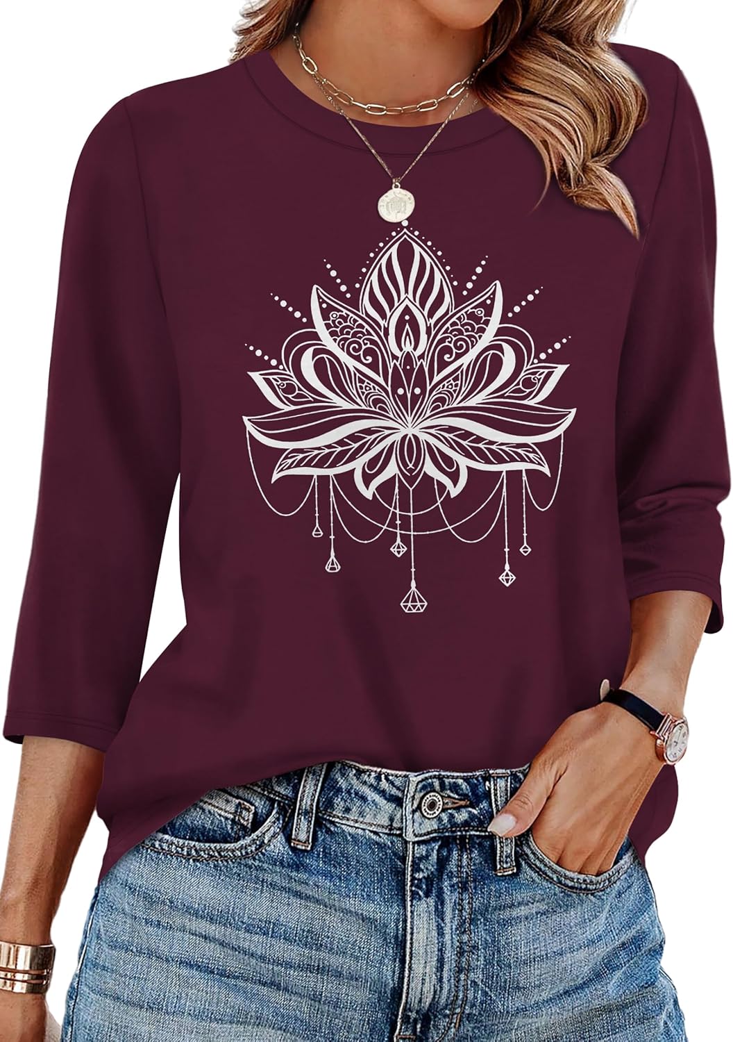 WIHOLL Womens 3/4 Length Sleeve Tops Crewneck Graphic Tees Casual Tunic Tops to Wear with Leggings Fashion Clothing Outfits