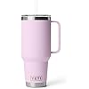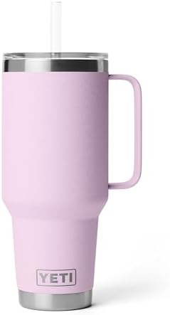 YETI Rambler 42 oz Tumbler with Handle and Straw Lid, Travel Mug Water Tumbler, Vacuum Insulated Cup with Handle, Stainless Steel, Cherry Blossom - Textured