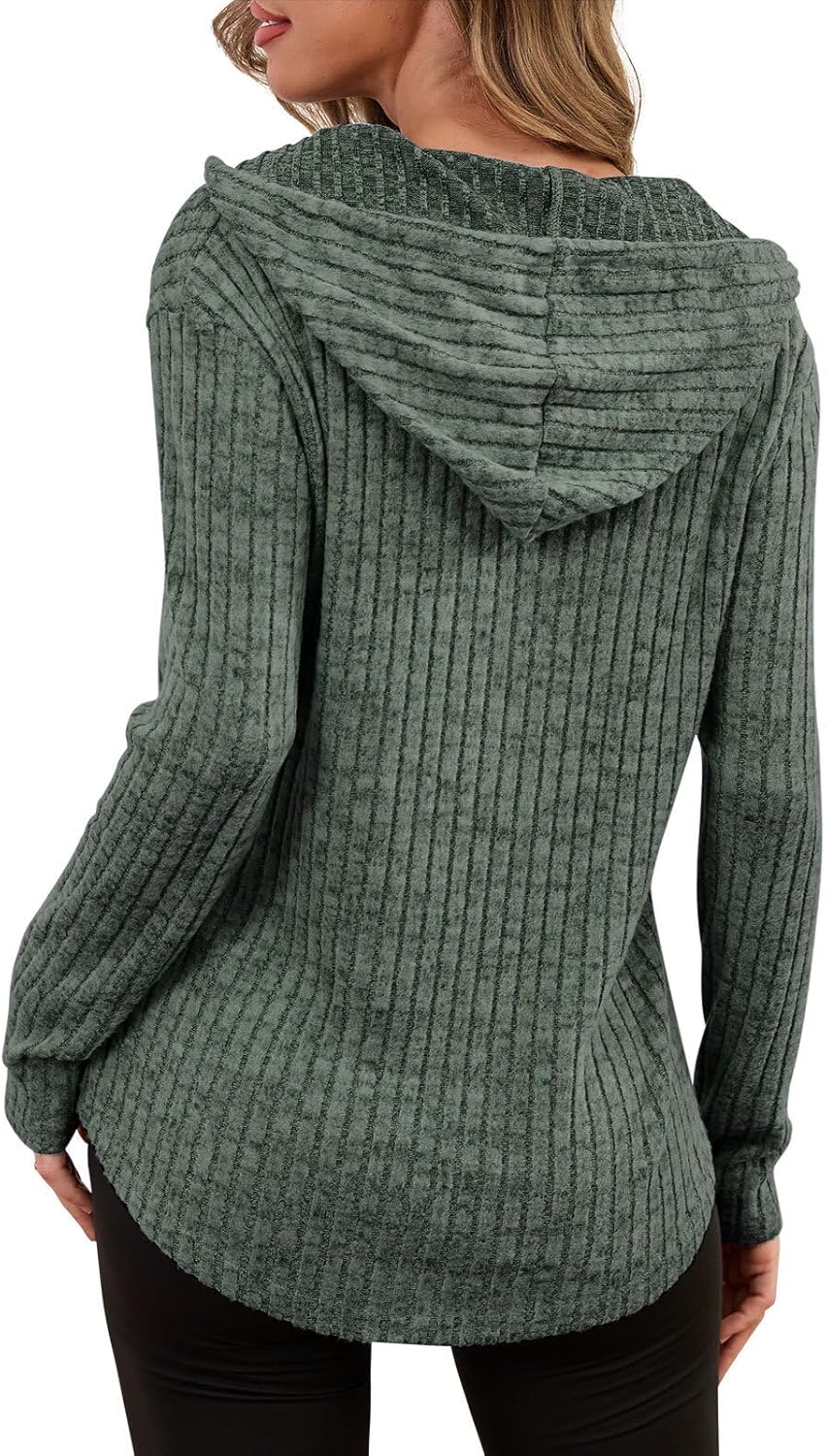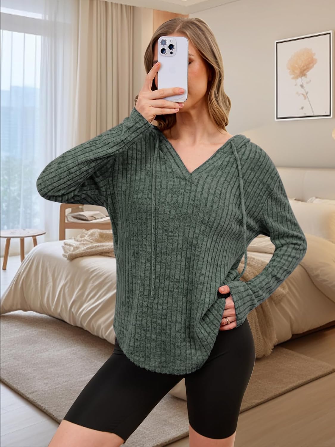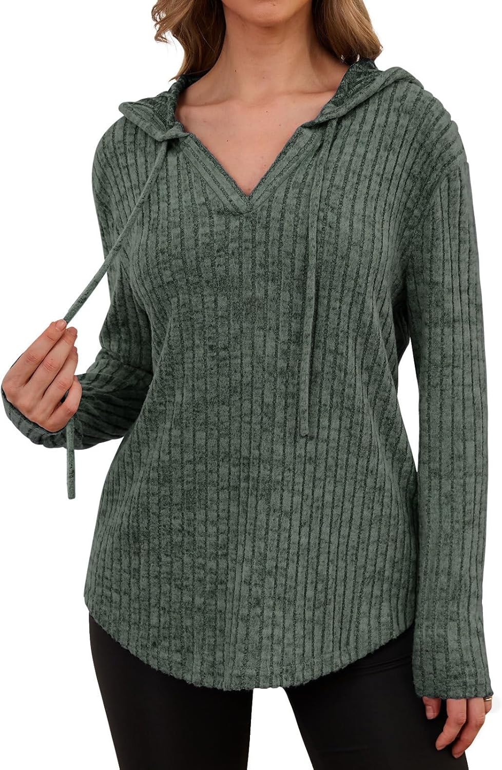 Lylinan Womens Long Sleeve Knit Hoodies V Neck Pullover Tops Ribbed Sweaters Fall Fashion Clothes S-XXL