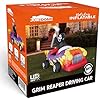 Eye-Catching Design: The blow up Grim Reaper, cloaked in darkness, speeds through the night in a car with a grinning skeleton co-pilot. Complete with eerie details like a scythe and skeletal steering, this mansion inflatable-worthy duo delivers laughs and chills in equal measure.
