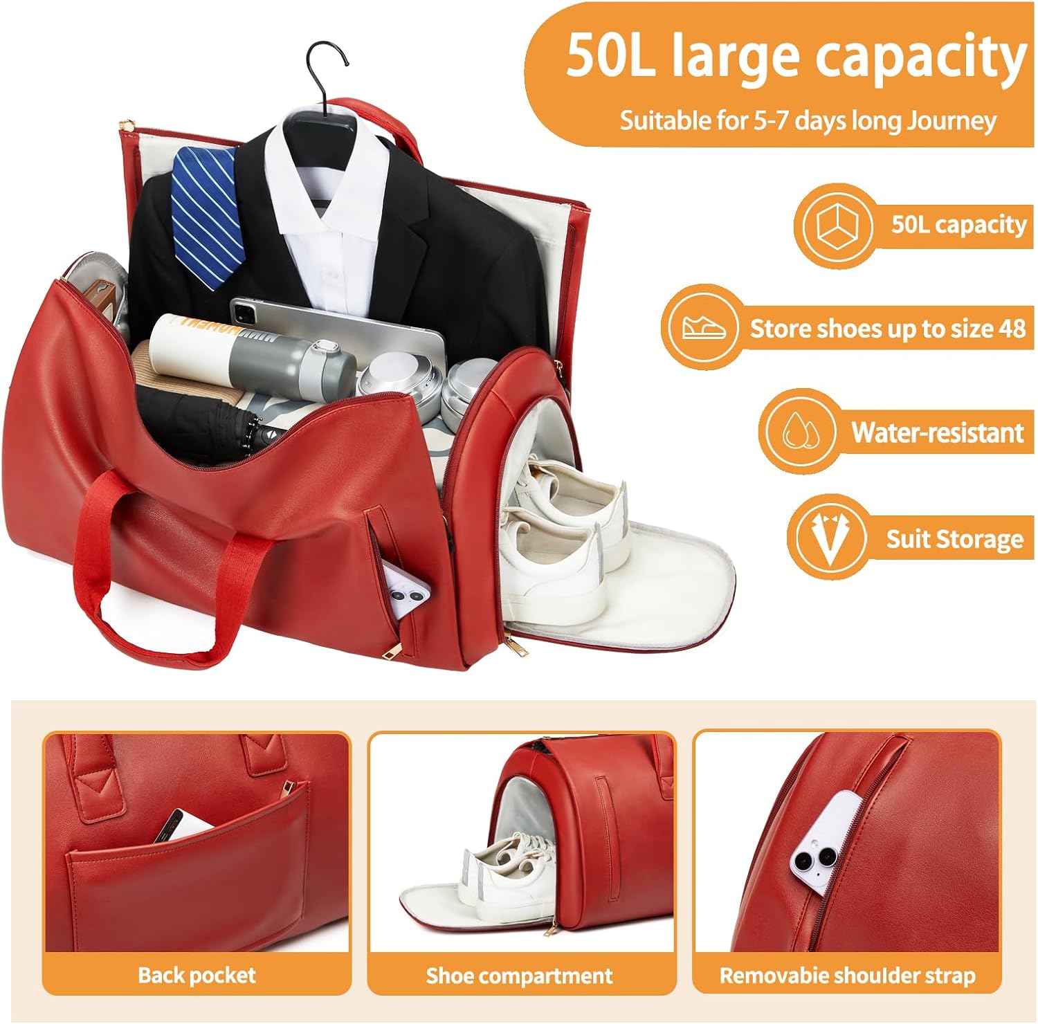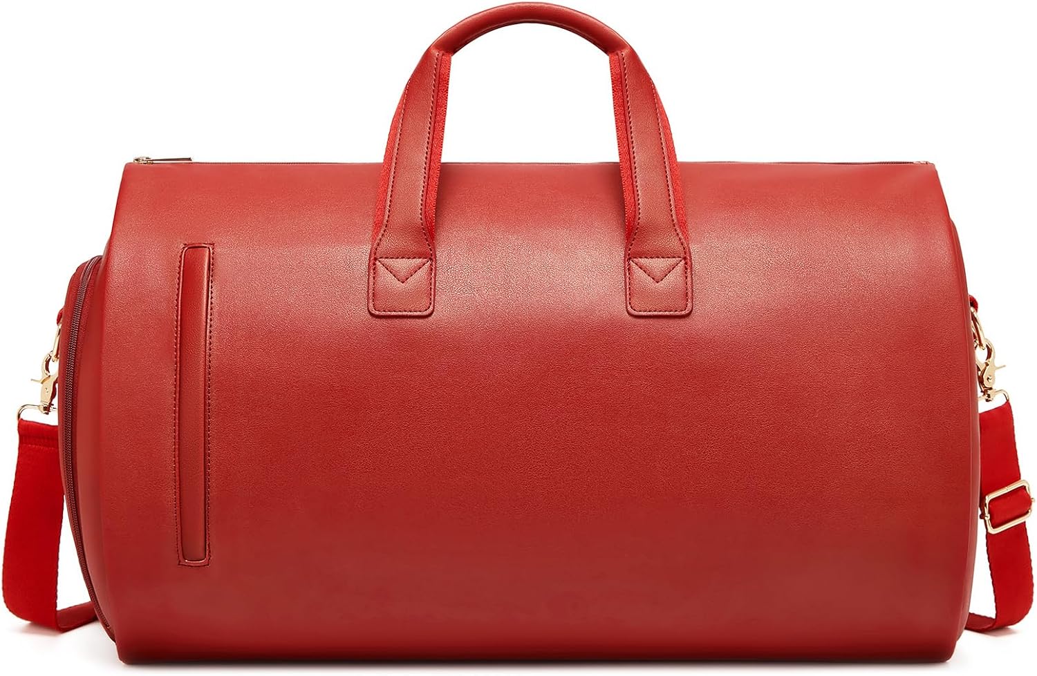 Leather Garment Bag Women, Carry on Garment Bag for Travel Convertible Garment Duffel Bag 2 in 1 Waterproof Foldable Travel Suit Bag Weekender Bag with Shoe Pouch