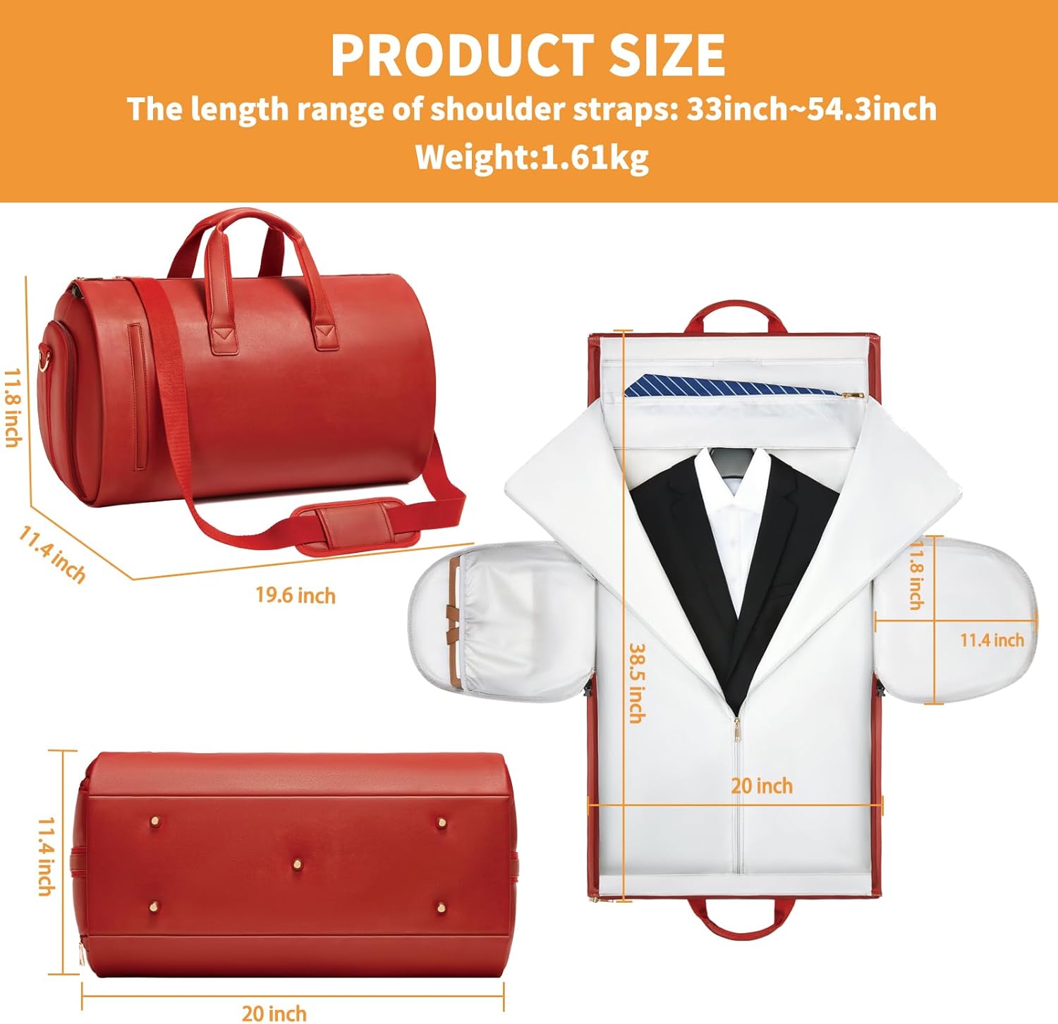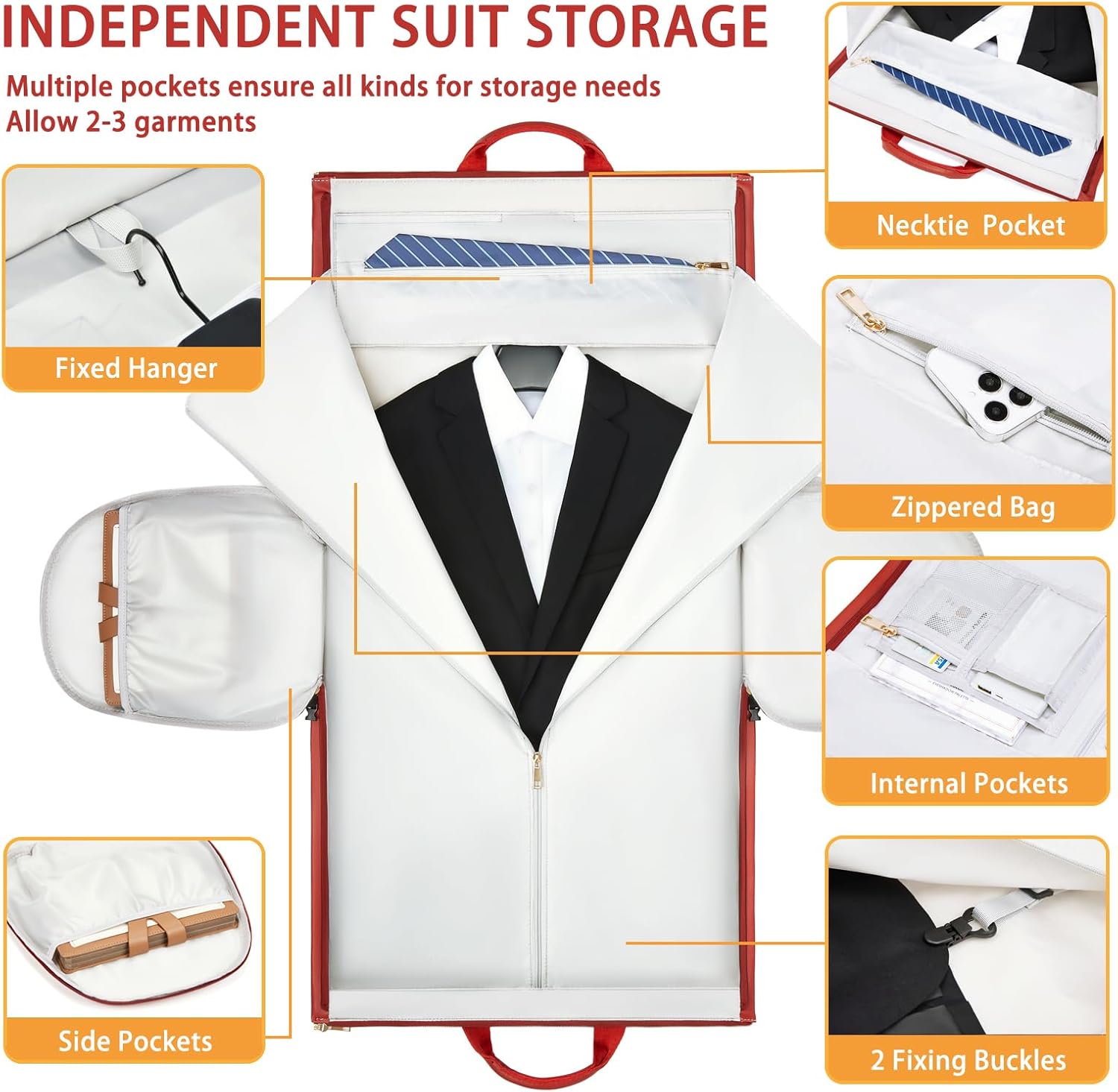 【Applicable Occasion】The back pocket has zippers up and down. You can unzip and hang your bag on the handle of your suitcase trolley, making your trip more convenient and easy. The size of the carry on suit bag is fit for the airline requirements. You can put it on the overhead bin or under the seat.Ideal to use this red garment bag for a business trip, weekend trip, party, vacation, gym, or touring performances and other formal occasions.