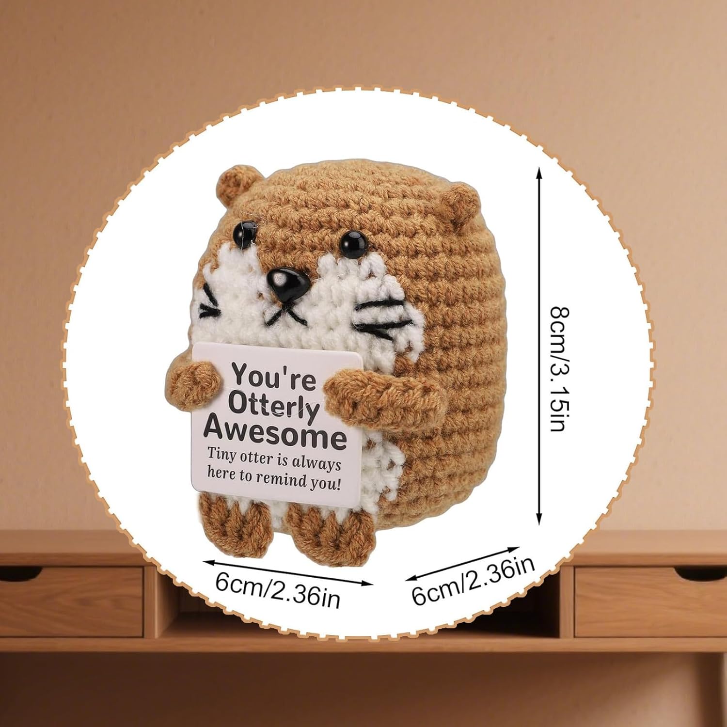 3 Inch Mini Sea Otter Crochet, Handmade Cute Emotional Positive Knitted Wool Sea Otter with Encourage Message Card for Home Office Decor, Anniversary Wedding Birthday Gift for Women Men