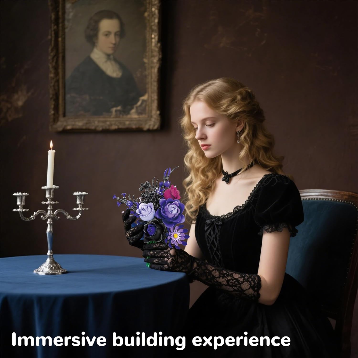Flowers Bouquet Building Set Roses Purple Compatible with Lego Botanical Collection Gothic for Women Adults Girls 14+ Home Office Decor