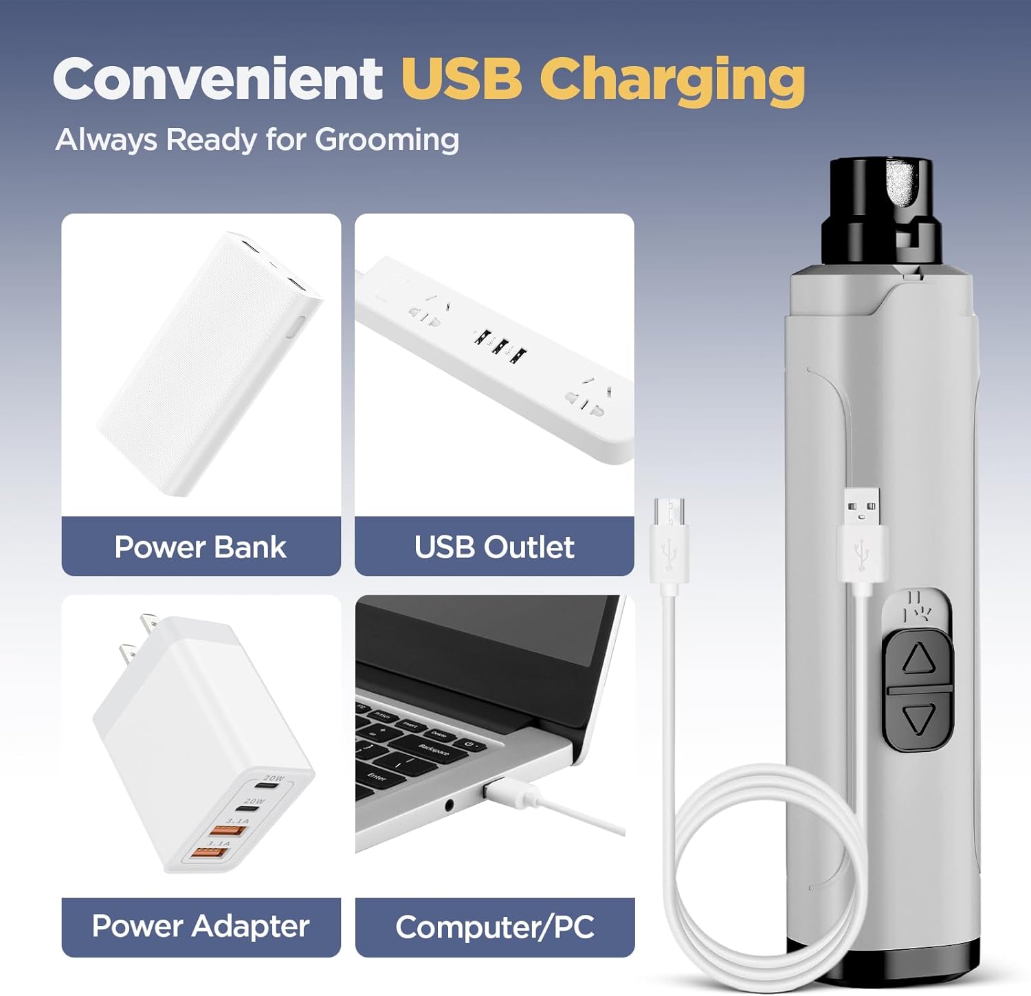 【Effective & Precise Trimming】: Powerful dog nail files with advanced diamond bit grinder and motor, provide faster, more precise, and more comfortable pet claw grinding than manual dog nail clippers. Recommended by veterinarians and pet grooming professionals, painlessly and precisely trim your pet's nails anywhere, is a superior pet supplies.