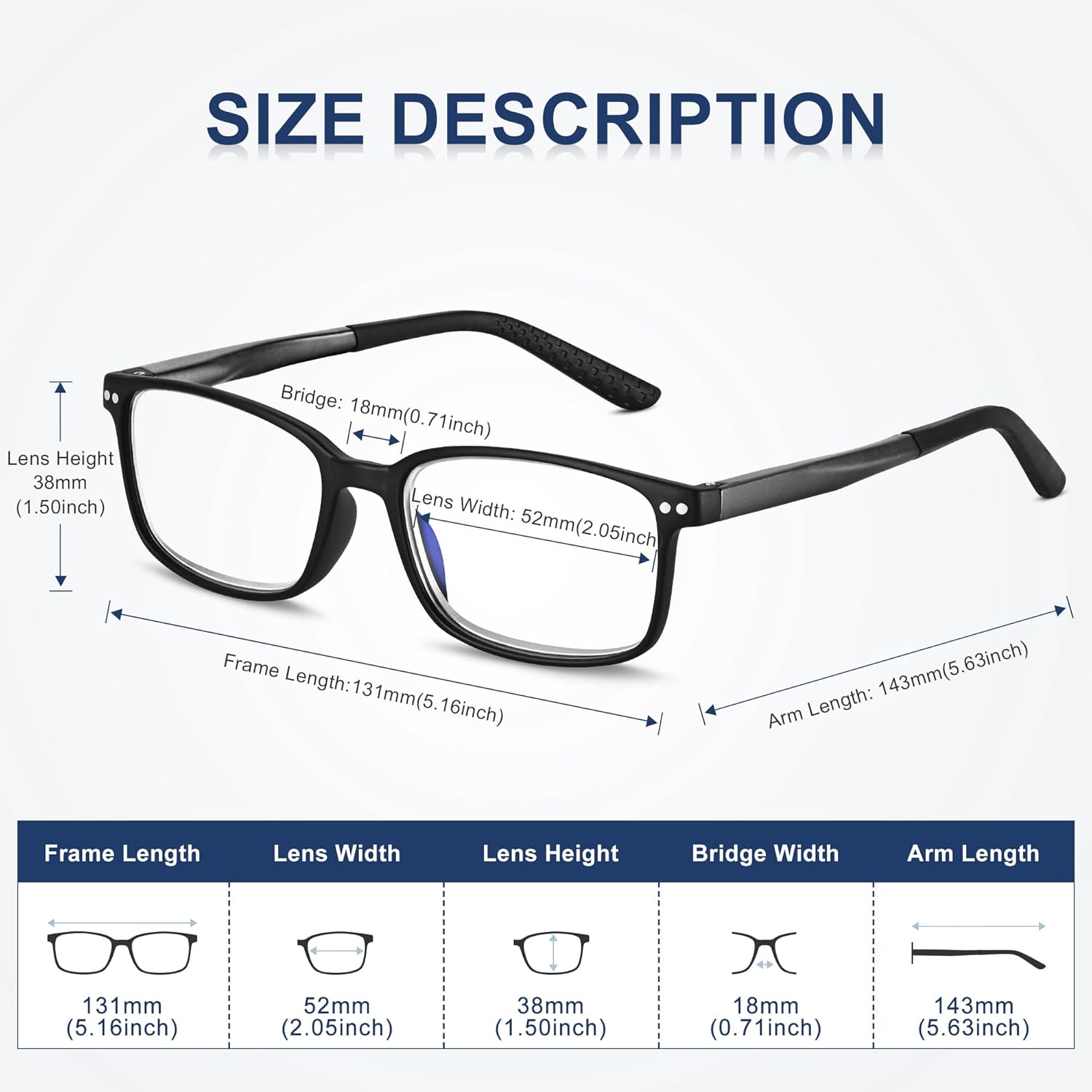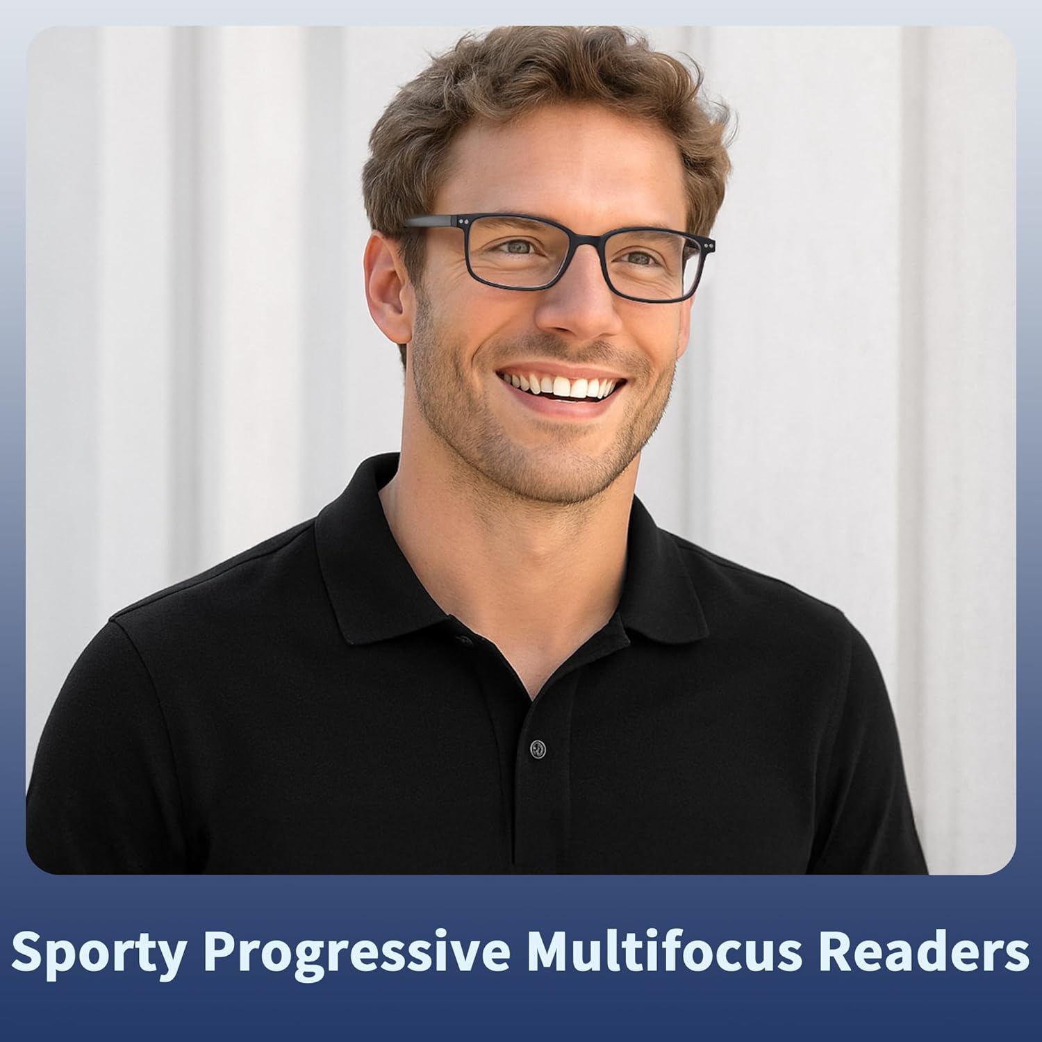 EASY READ TR90 Progressive Multifocal Reading Glasses for Men,Rectangular Blue Light Blocking Readers with Spring Hinge