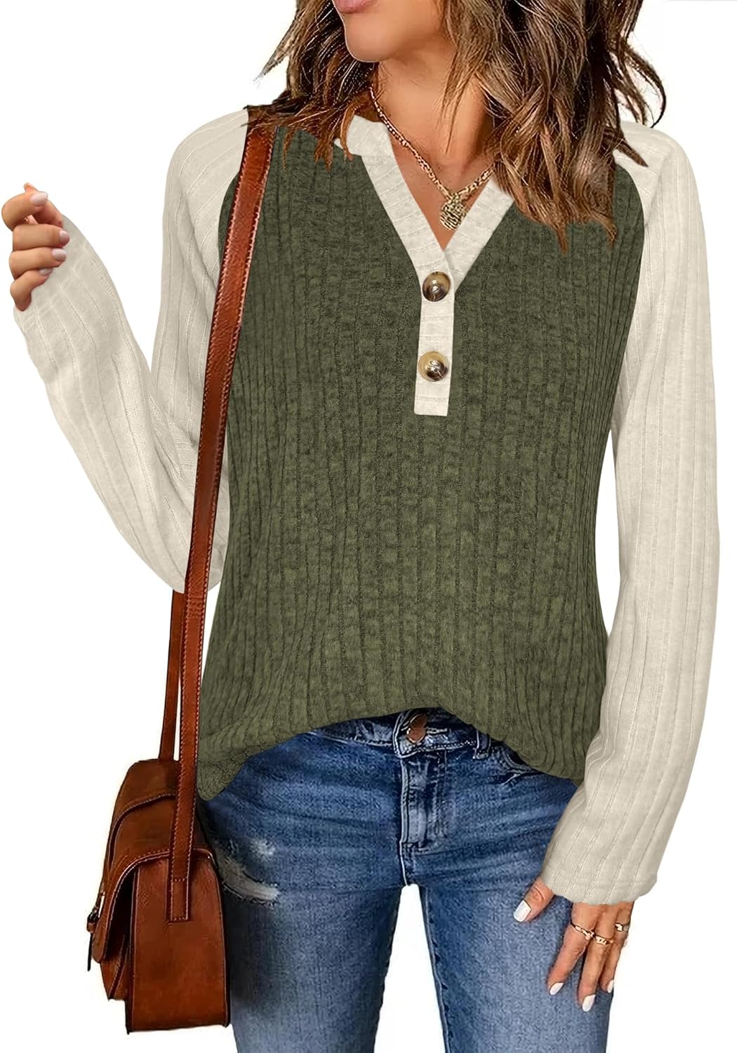 Womens Lightweight Sweaters Button Down Fall Long Sleeve Pullover Shirts Business Casual Tunic Tops