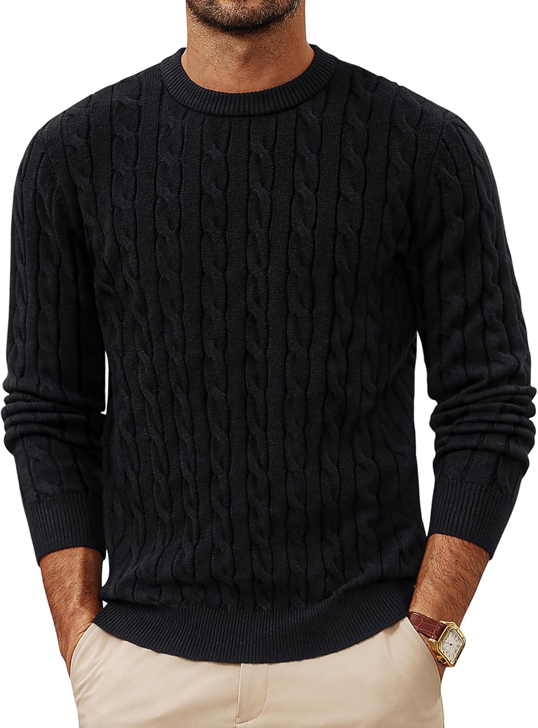 PJ PAUL JONES Mens Sweaters Casual Cable Knit Pullover Sweater Crewneck Twist Sweaters