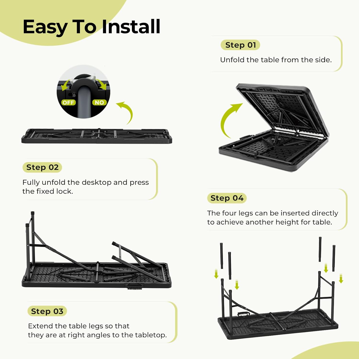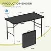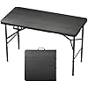 4Ft Folding Table Adjustable Height Portable Folding Tables Heavy Duty 400 lbs Capacity, Wood Grain Tabletop for Working Meeting Parties, Picnic, Camping, Weddings, Garden Dining-Black