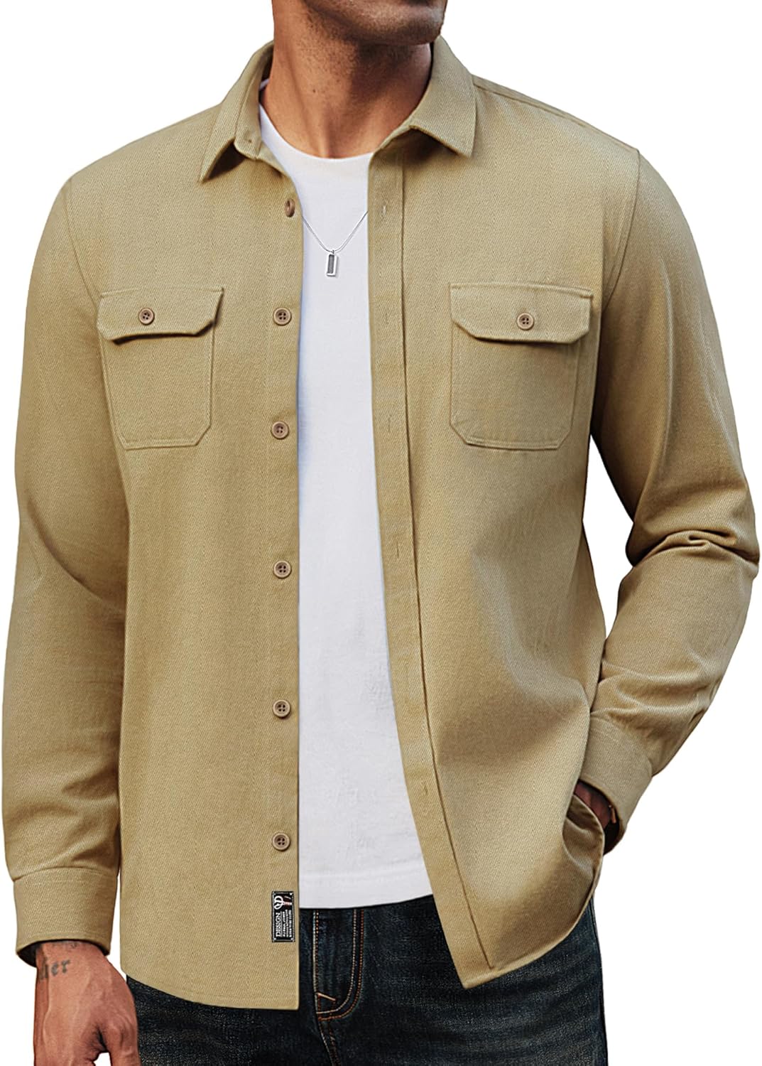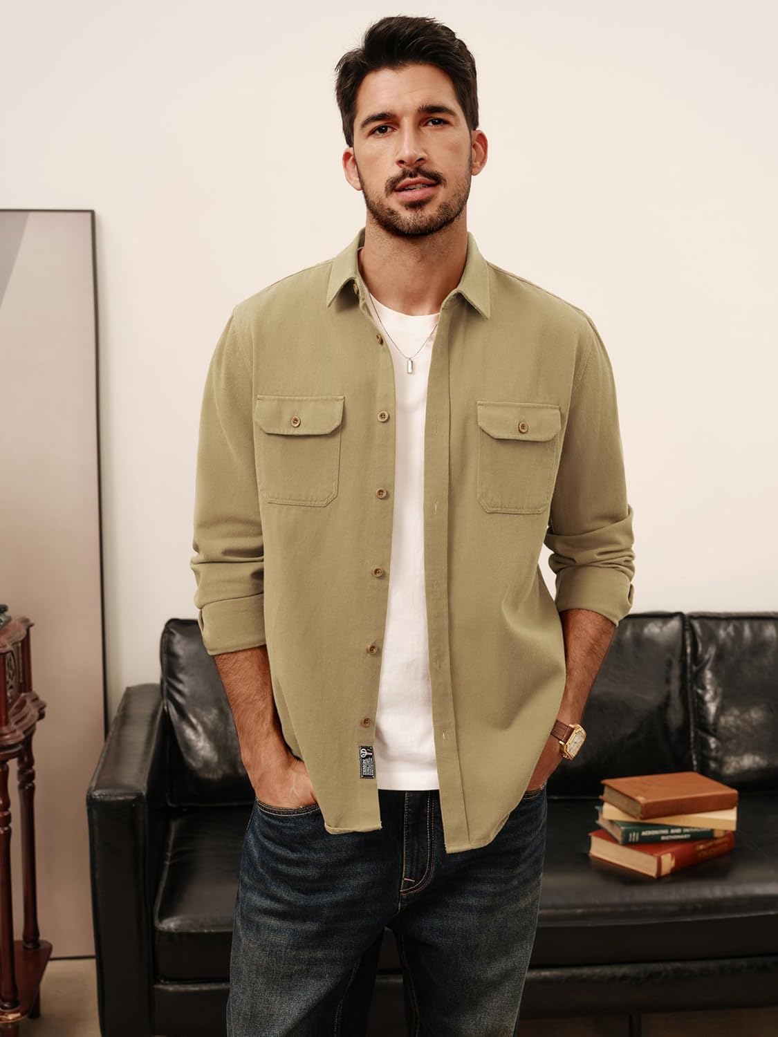 PJ PAUL JONES Mens Casual Shacket Cotton Twill Lightweight Jackets Button Down Shirt Jacket with Pockets