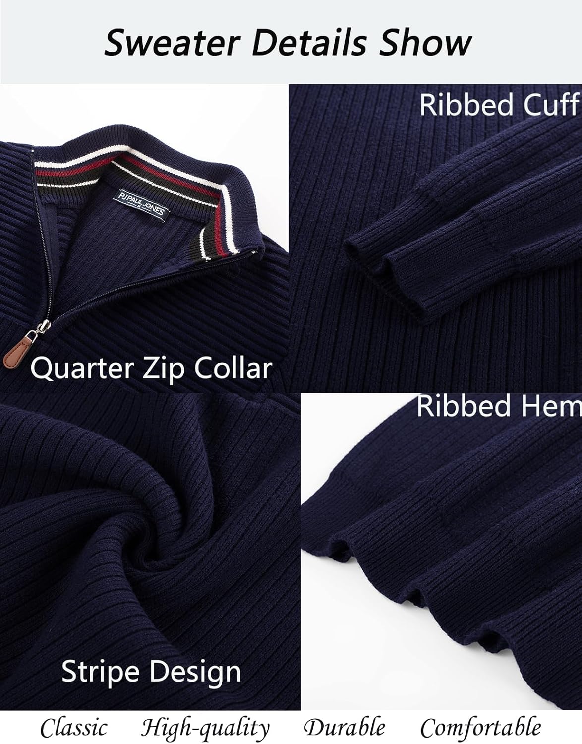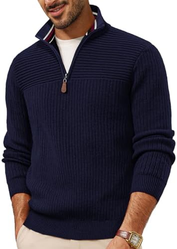 PJ PAUL JONES Mens Quarter Zip Sweater Long Sleeve Casual Pullover Knitted Textured Dress Sweaters