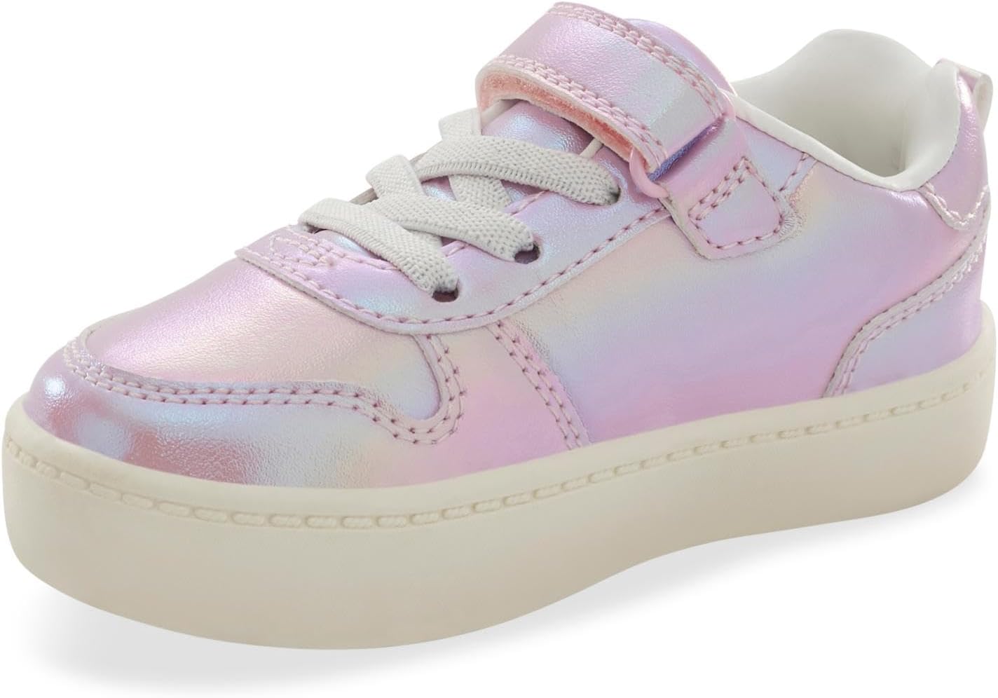 Designed with an easy hook and loop closure and comfy insoles, these metallic sneakers are perfect for dressing up or keeping it cool.