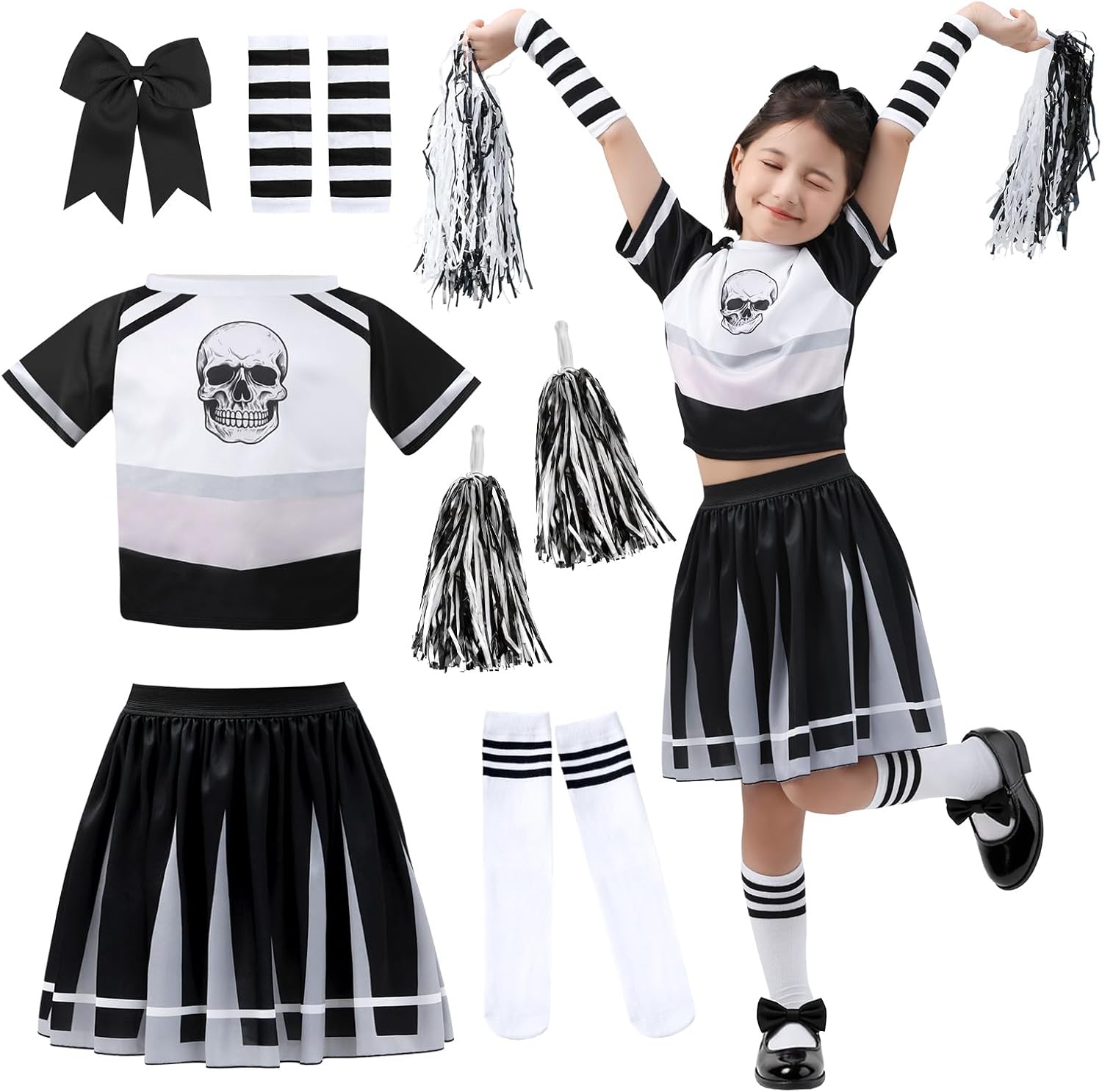 Skeleton Cheerleader Costume for Girls - Scary Bad Spirit Halloween Outfit - Dead Cheer Skull Scary Outfit