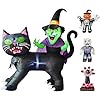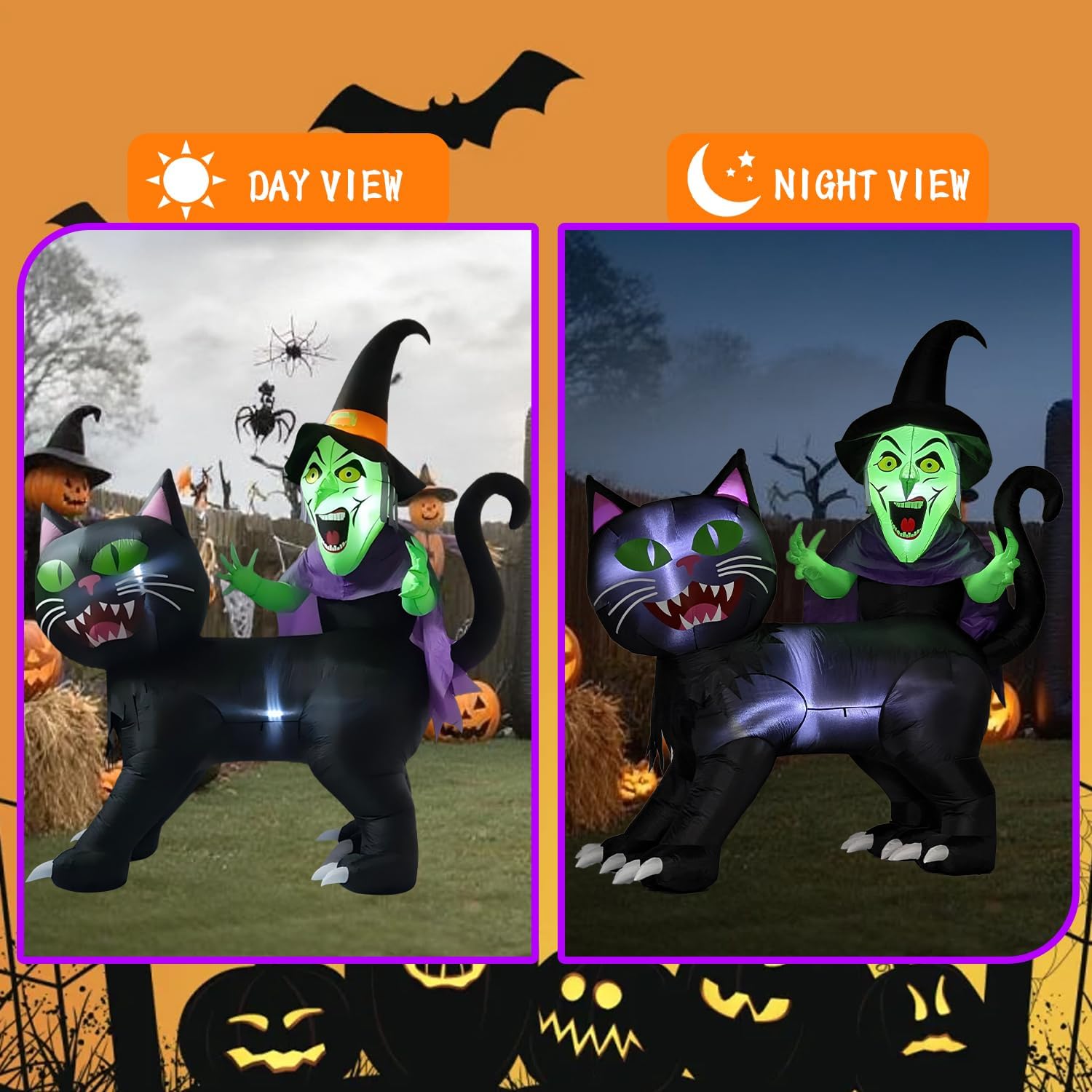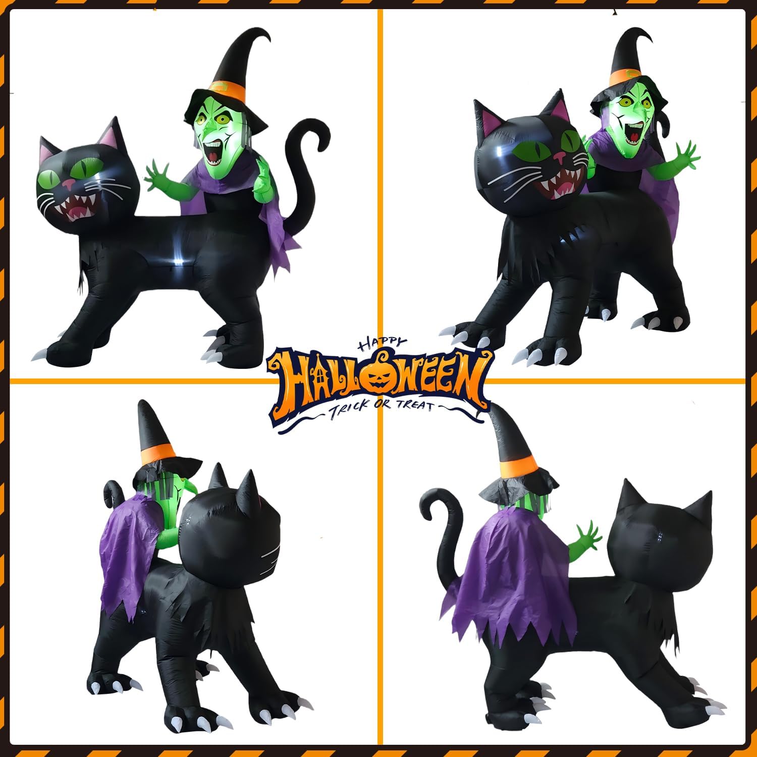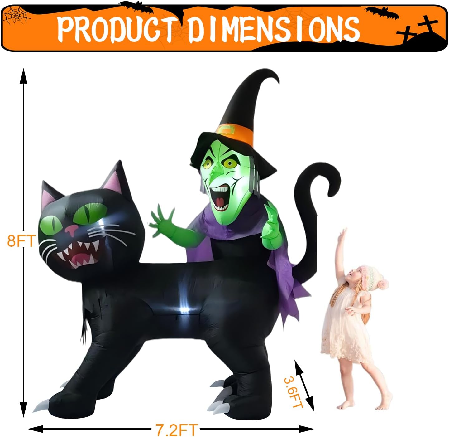LANGXUN 8ft Witch Riding Black Cat 2025 Halloween Inflatable Decoration - Giant Blow-Up Yard Decor with LED Lights for Outdoor Lawn, Garden, Patio Cute Skeleton Ghost Hoilday Yard Party Decor
