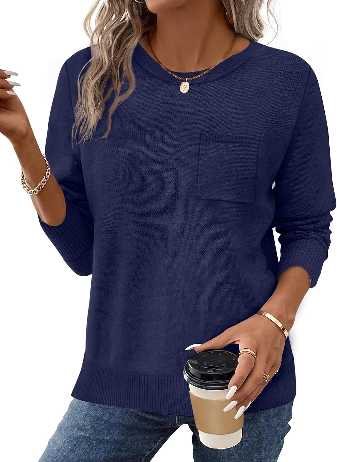 OFEEFAN Sweaters for Women Knitted Ribbed Casual Long Sleeve Crew Neck Pullover Basic Fall Fashion Outfits Tops 2025