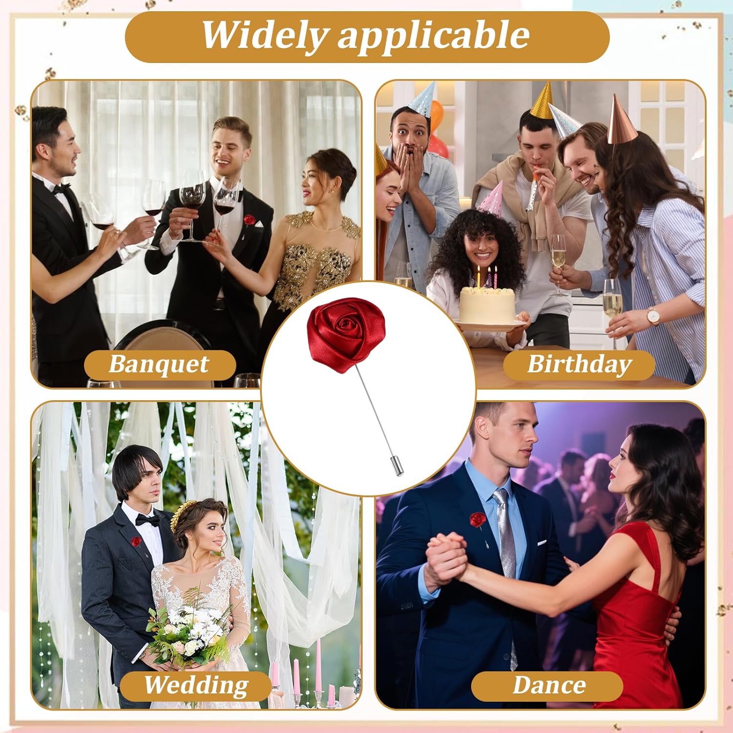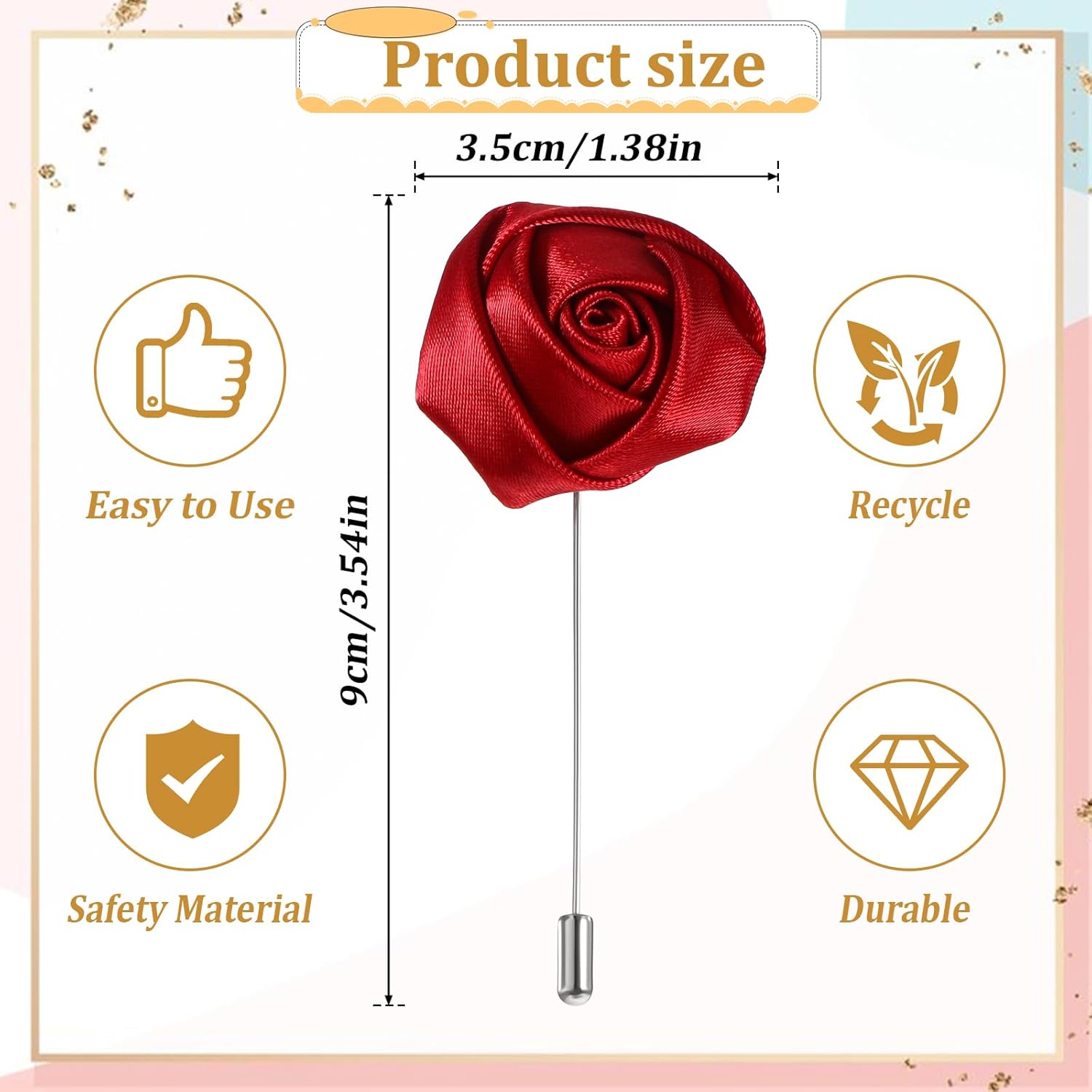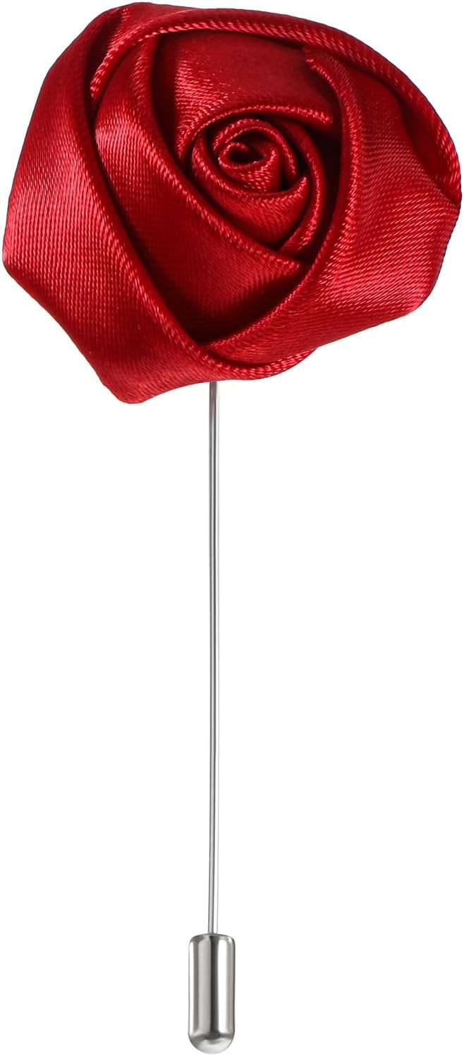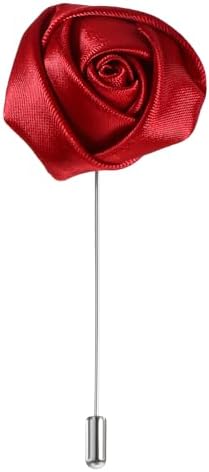 Flower Pin for Men Gentleman's Essentials Premium Handmade Red Flower Satin Lapel Pin Rose Flowers Boutonniere Pins Stylish Accessory for Party Wedding Business Suit