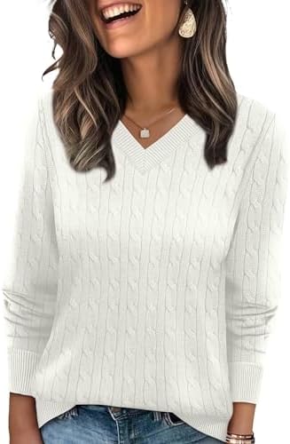 Sampeel Sweaters for Women Fashion 2025 Cable Knit Fall Clothes V Neck Business Casual Teacher Outfits