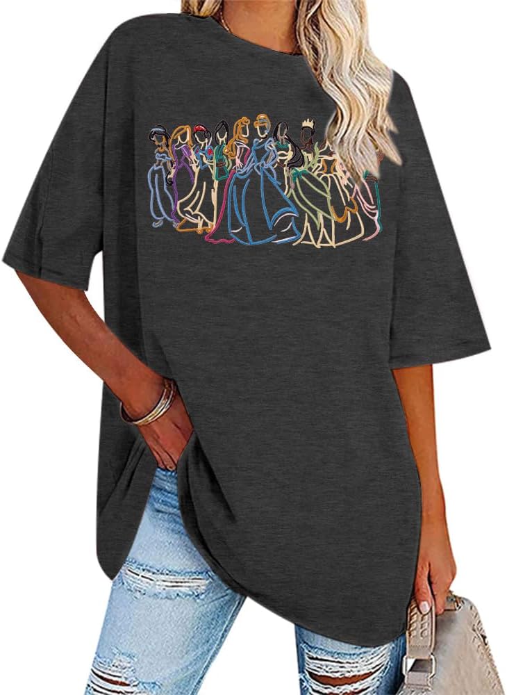 BANGELY Magical Shirt Women Cute Embroidered Magic Princess T-Shirt Family Vacation Shirt Casual Short Sleeve Tee Top