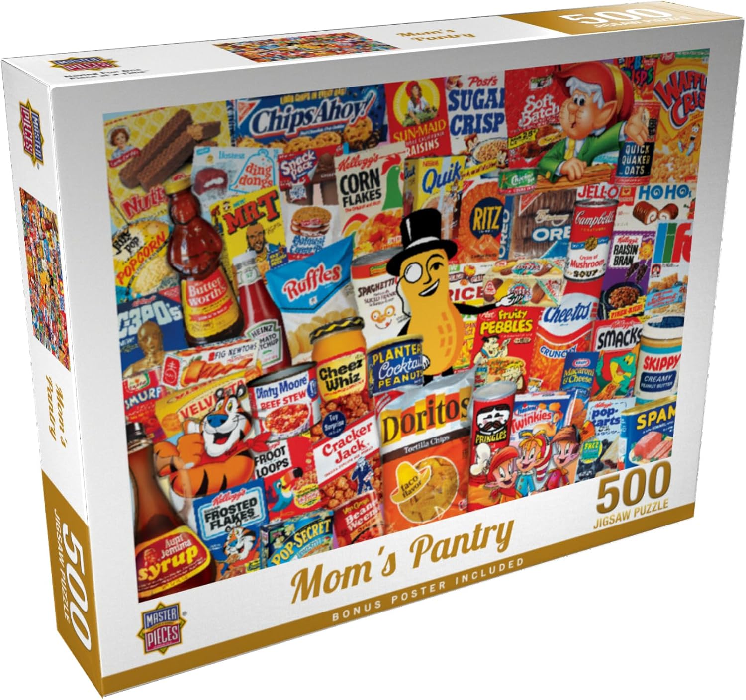 Take a delightful trip down memory lane with this MasterPieces puzzle! Uncover your mom's beloved pantry favorites from bygone eras. Each piece carries the cherished memories of your favorite foods and snacks waiting to be assembled and providing a delightful challenge. Perfect for puzzle enthusiasts yearning for a taste of the past. Relish the satisfaction of completing this delectable puzzle and relive the joy of nostalgia!