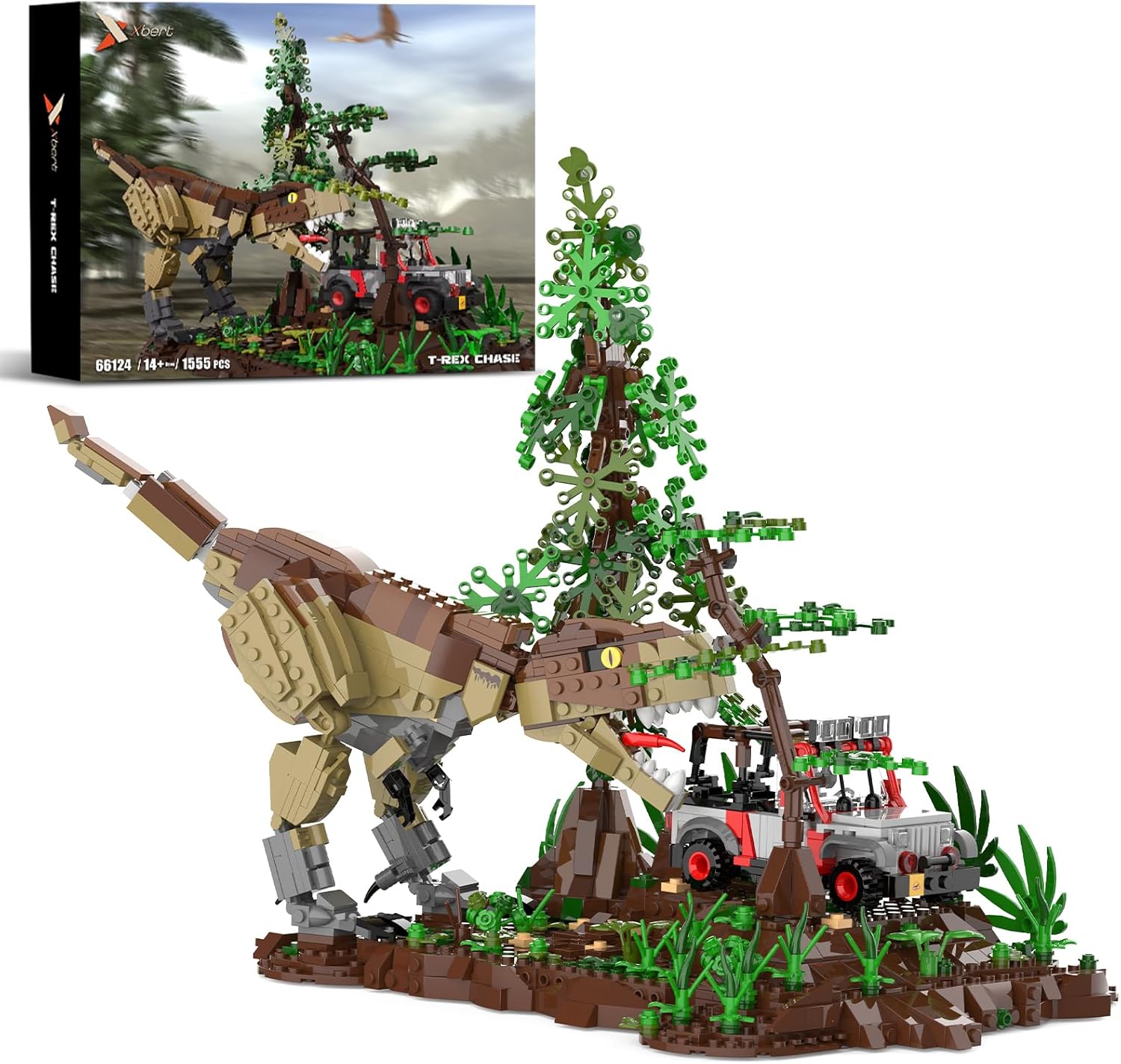 Dinosaur Park World Building Toys, Jurassic Dinosaurs Building Blocks Set T Rex Chase Scene, STEM Educational Birthday Gifts for Adult and Kids Boys Age 8-12 (1555 PCS)