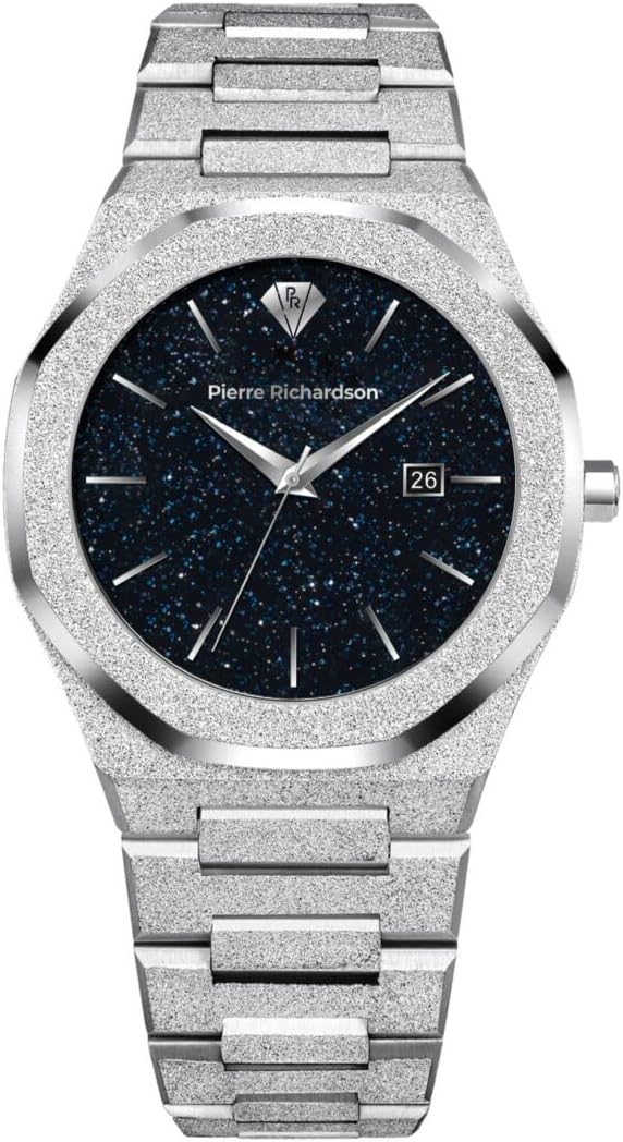 Pierre Richardson Men’s Luxury Watch PR5691 – Silver Frosted Stainless Steel Japanese Quartz, 41mm, 5ATM Water Resistant, Scratch-Resistant Sapphire Crystal Glass, Elegant Dress Watch for Men, Reloj para Hombres