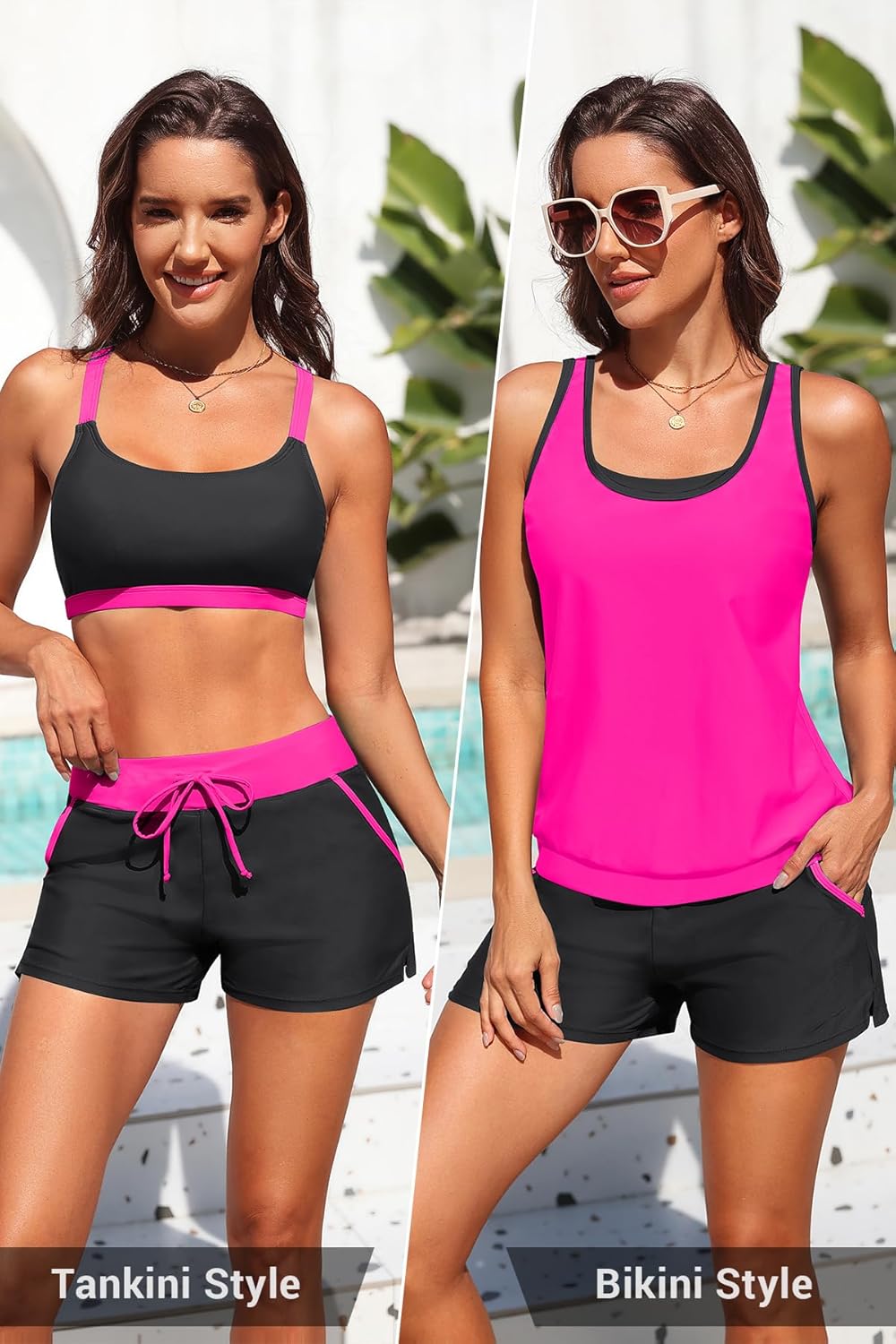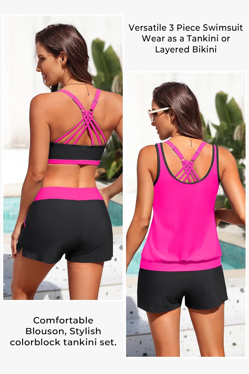 Aqua Eve 3 Piece Tankini Swimsuits for Women - Blouson Bathing Suits Tummy Control Swim Shorts with Sporty Pockets 2026