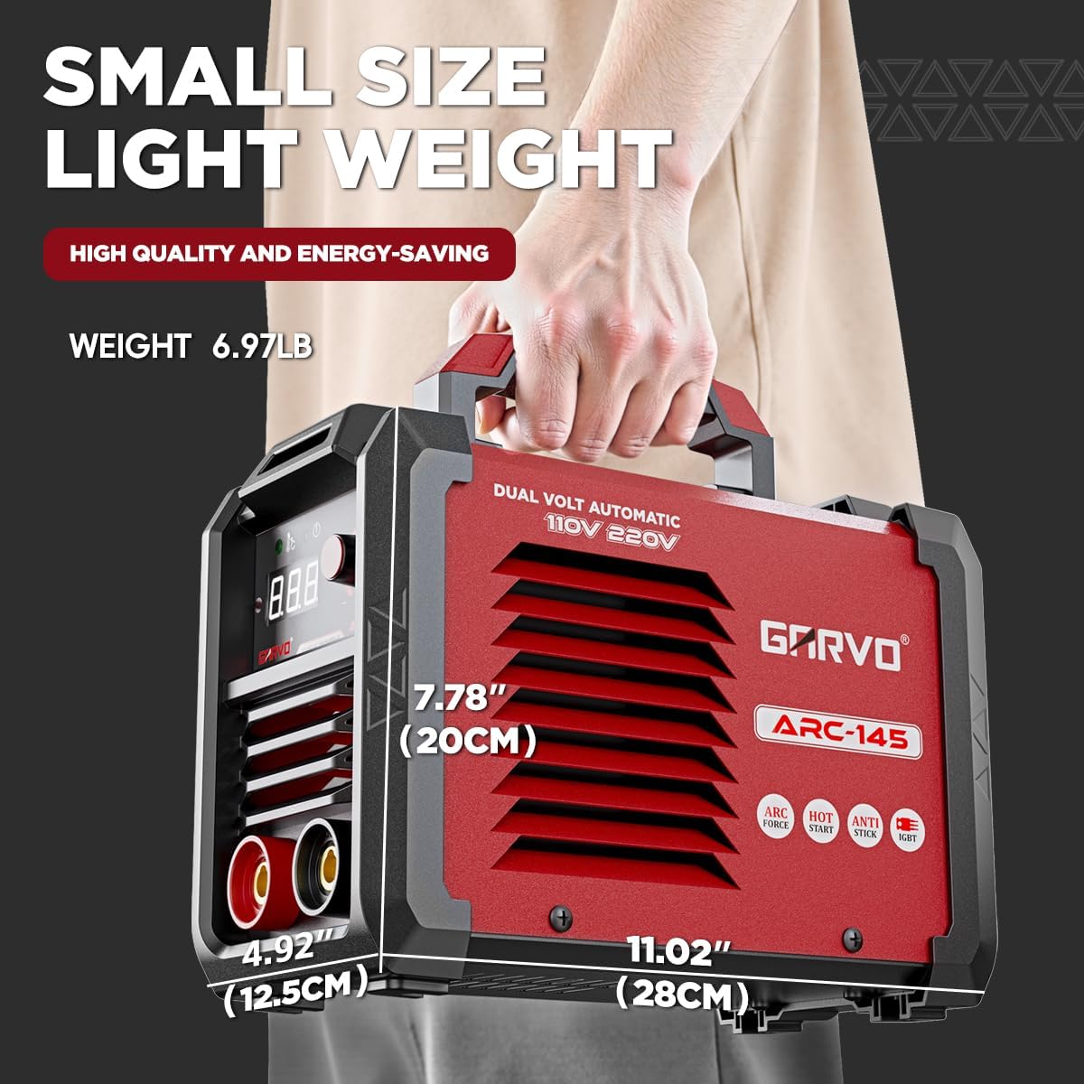 GARVO 110V/220V Dual Voltage Portable Welding Machine,145Amp ARC Welder Mini Stick welder Digital Display LCD,Hot Start,Arc Force and Anti-Stick ARC-145(ARC-145)
