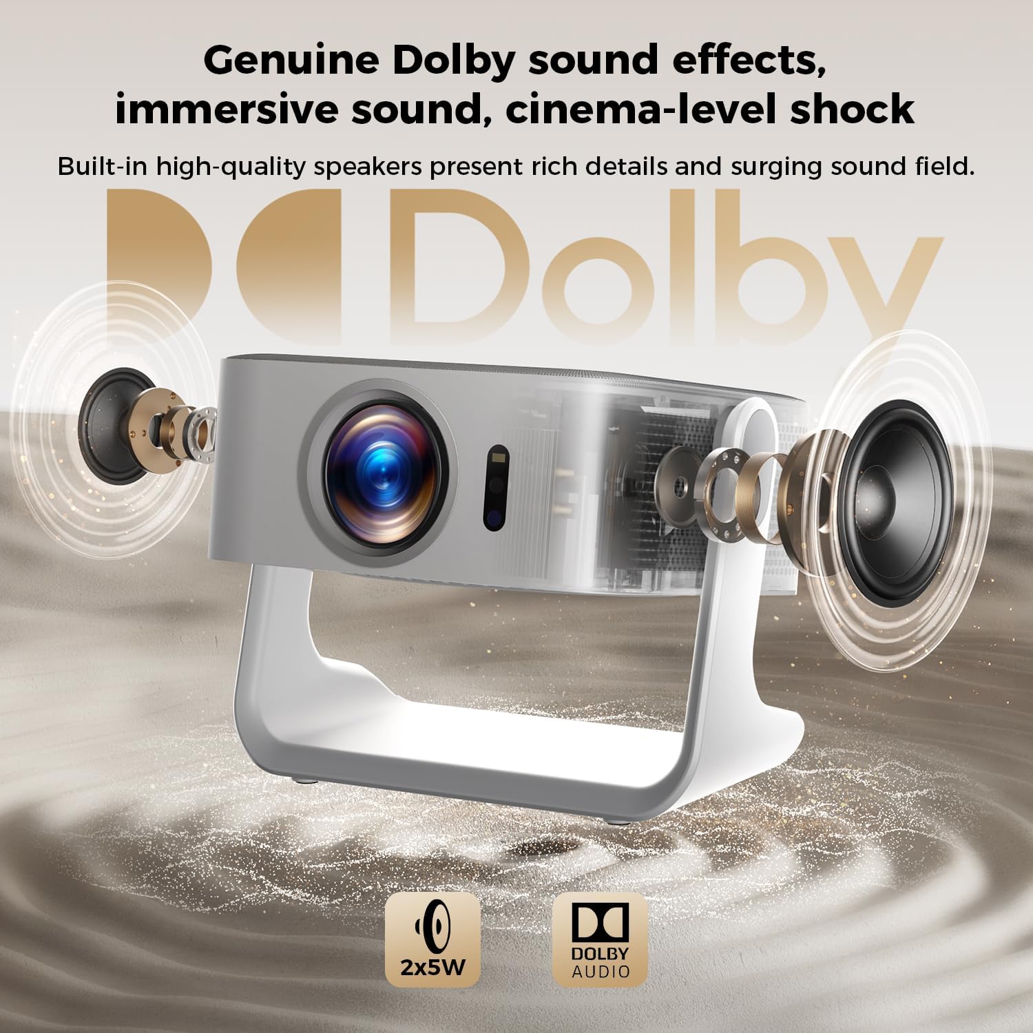 【Next-Gen Connectivity with Wi-Fi 6 & Bluetooth 5.4】 The Portable Projector features Wi-Fi 6 for faster, stable connections, up to 3x faster than Wi-Fi 5, ensuring smooth streaming. Bluetooth 5.4 easily pairs with external speakers or headphones for enhanced audio or private viewing. Built-in 10W Hi-Fi speakers deliver immersive stereo sound, making it perfect for home theaters, gaming, or outdoor movie nights. Enjoy seamless connectivity and exceptional sound with this next-level projector