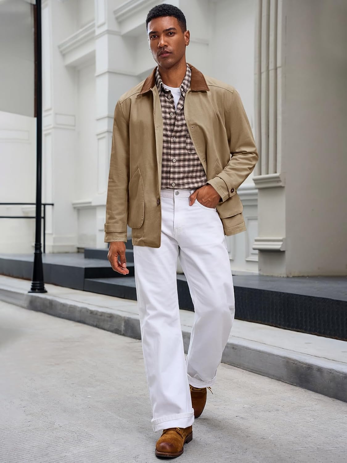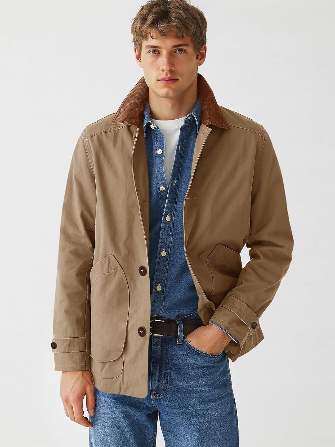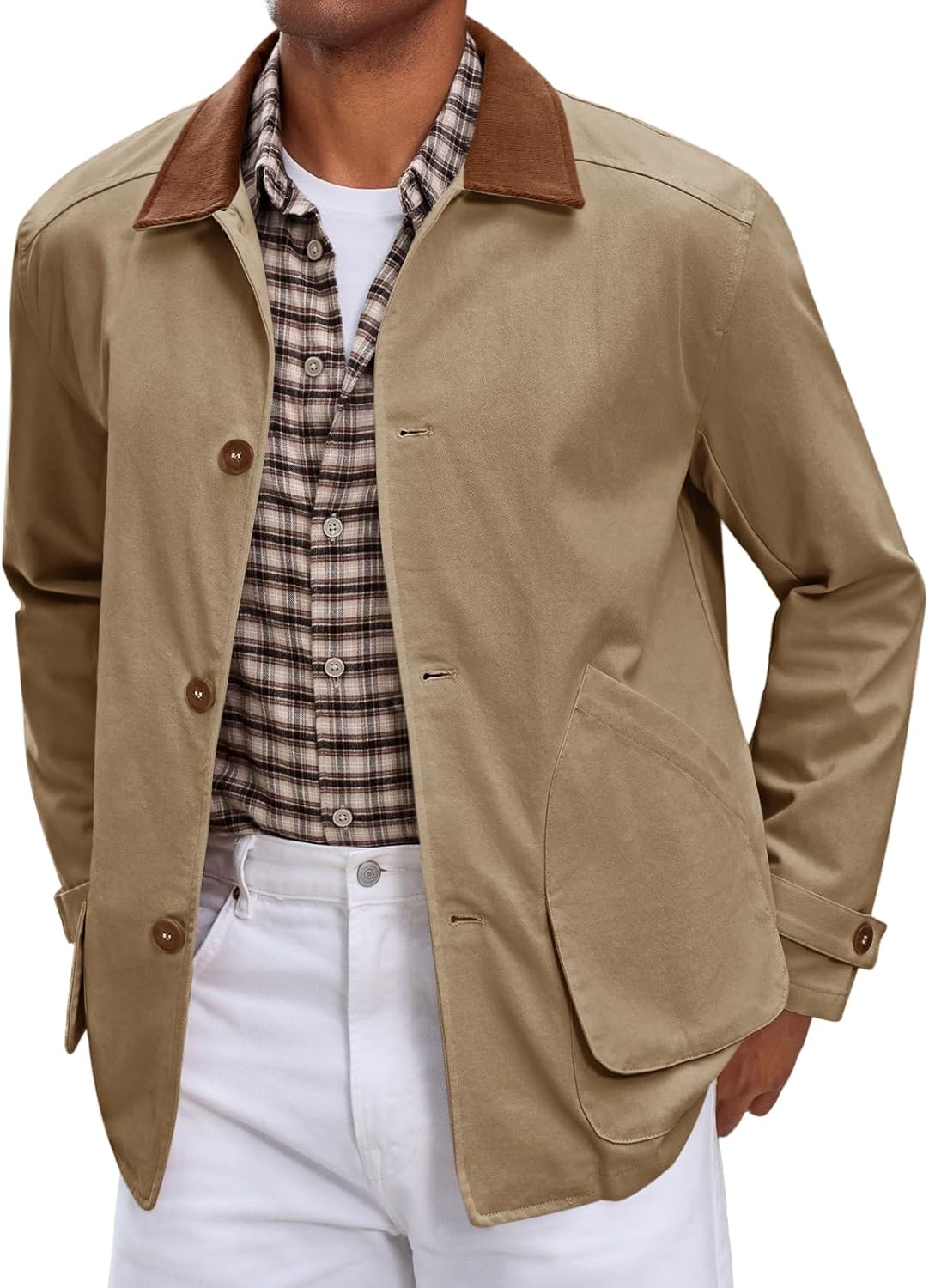 Runcati Mens Lightweight Jackets Button Down Casual Cotton Barn Jacket Vintage Military Fall Outwear with Pockets