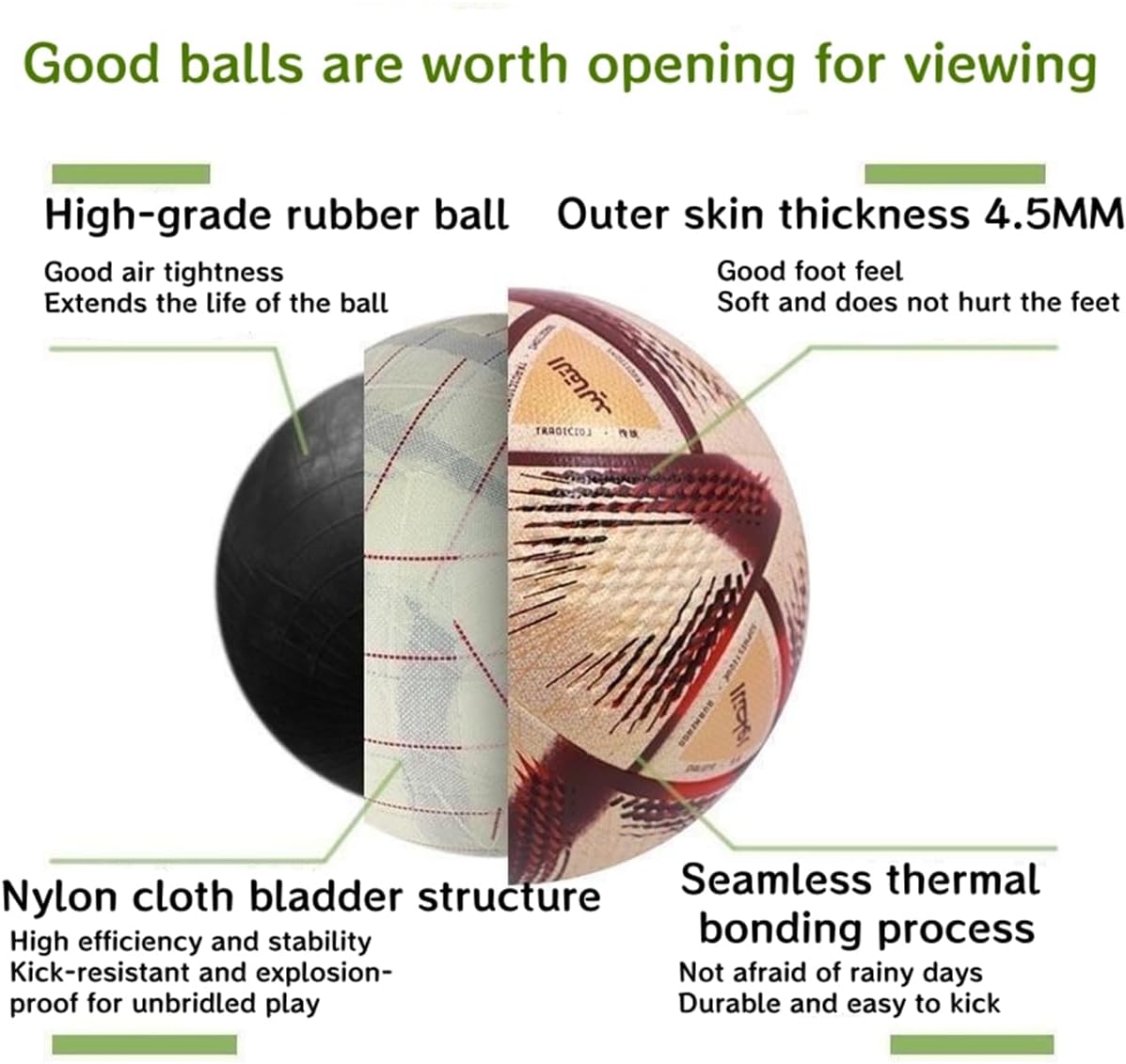 Multi-Weather Performance: Designed to withstand various weather conditions, this professional soccer ball delivers consistent performance on all types of grounds, making it the ideal choice for training sessions and matches alike.
