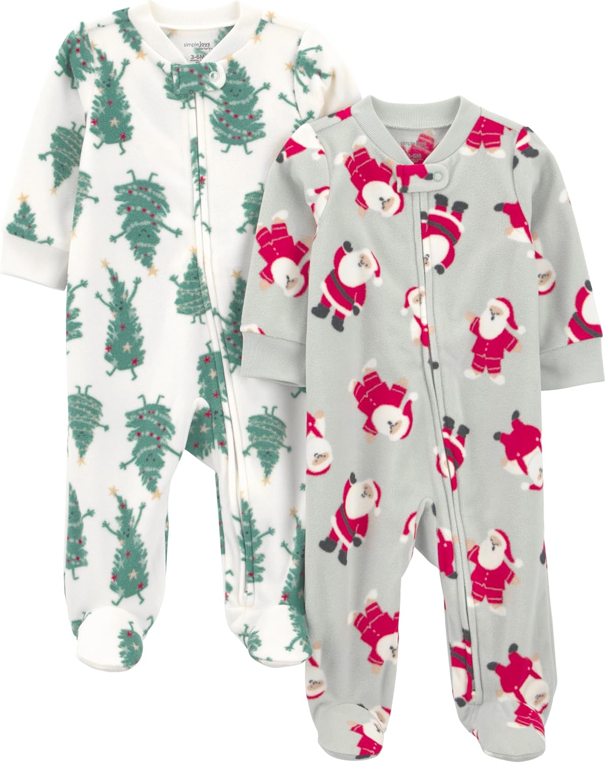 Simple Joys by Carter's unisex-baby In 2pk Fleece Snp Santa Trees