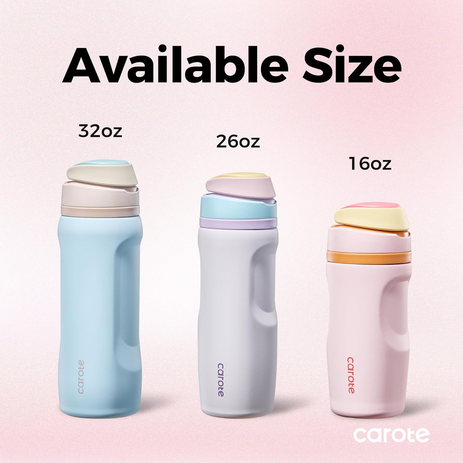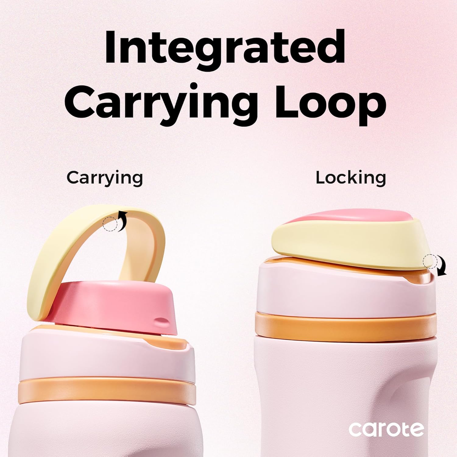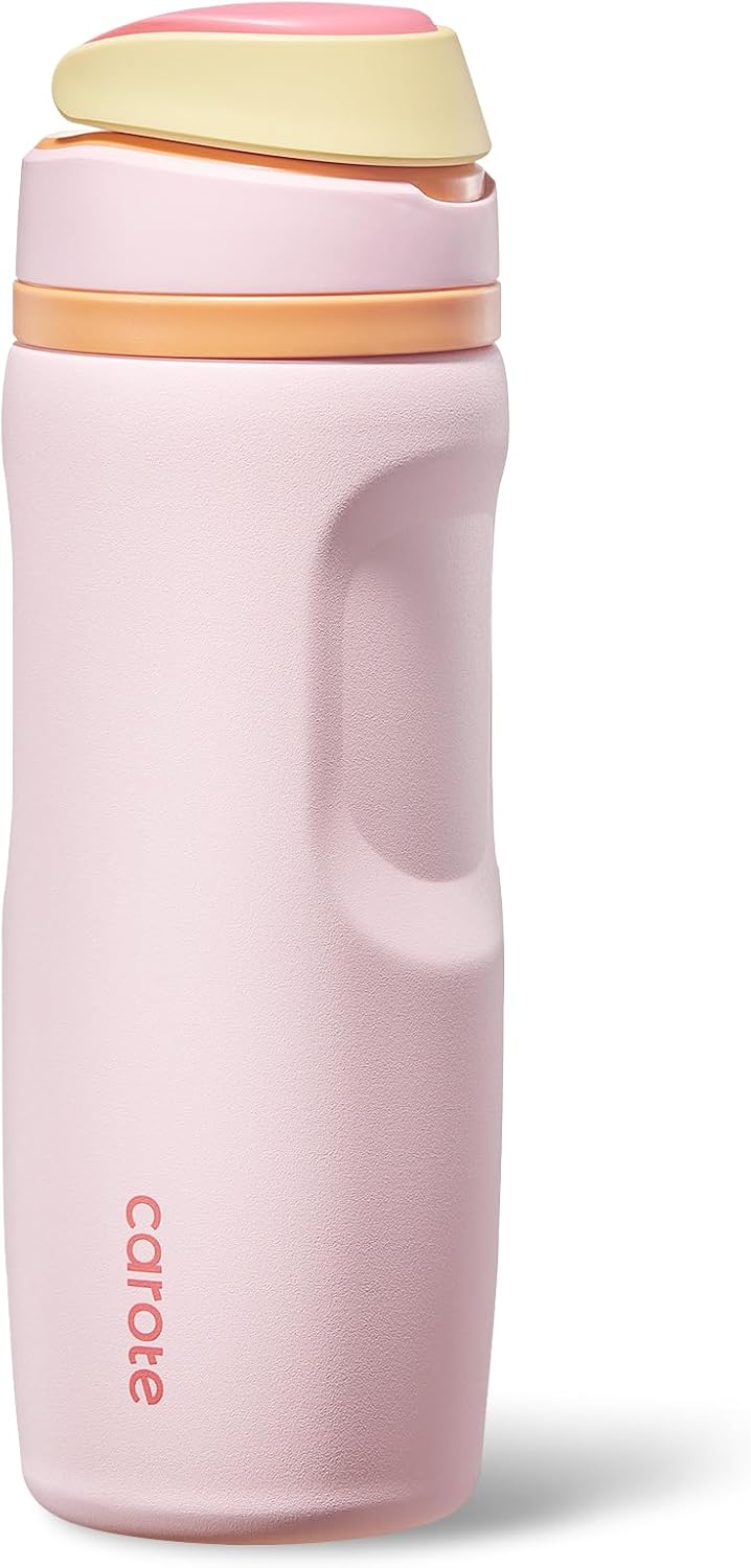 CAROTE Sip Free Insulated Stainless Steel Water Bottle with Straw, BPA-Free Sports Water Bottle, Great for Travel, Sunshine Coast Handle Tumbler, 26 Oz, Pink Peach