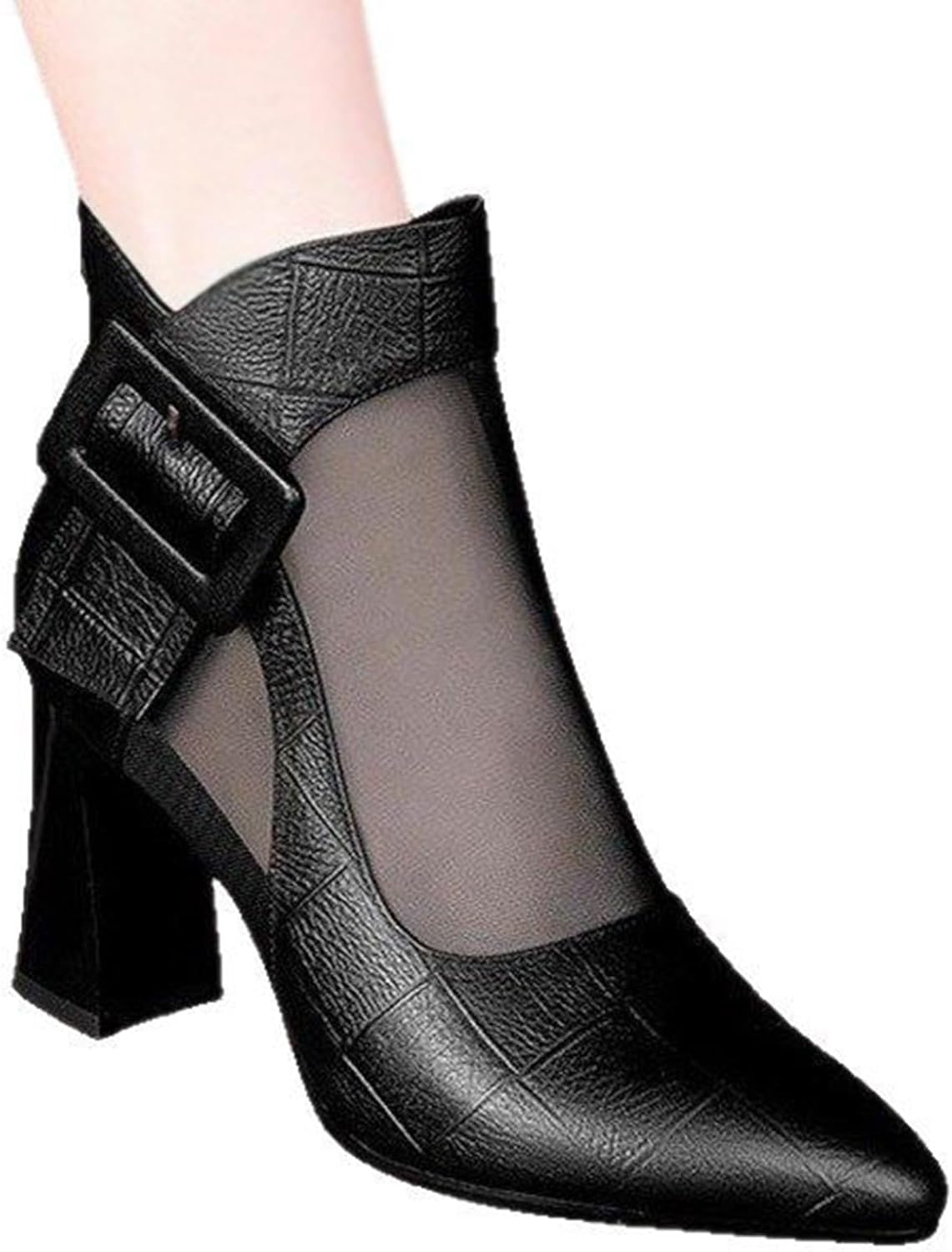 Womens Chunky Heels Mesh Sandals High Heel Ankle Boots Pointed Toe Back Zipper Dressy Casual Summer