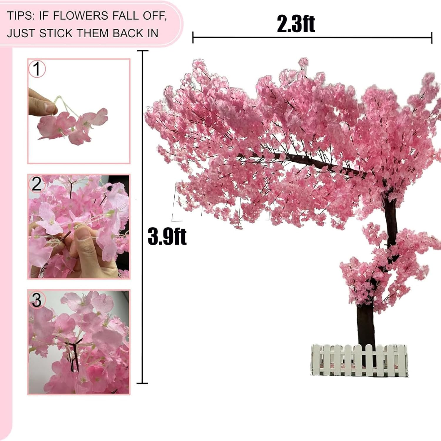 Product DescriptionHope you can find what you like in our shop.Name: Artificial Cherry Blossom TreeMaterial: Solid Wood + High-Quality Silk FlowersColor: As Shown in the PictureStyle: PremiumProduct Includes:1* Artificial Cherry Blossom TreeSize: 3.9ftx2.3ft , 5.9ftx4.9ft , 6.5ftx4.9ft , 6.5ftx6.5ft , 8.2ftx6.5ft , 8.2ftx8.2ft , 9.8ftx8.2ft , 9.8ttx9.8ftWarm Reminder:1.Please note that there may be slight color difference due to different monitors. Please understand.2.Please allow 3-5cm difference due to manual measurement, thank you.