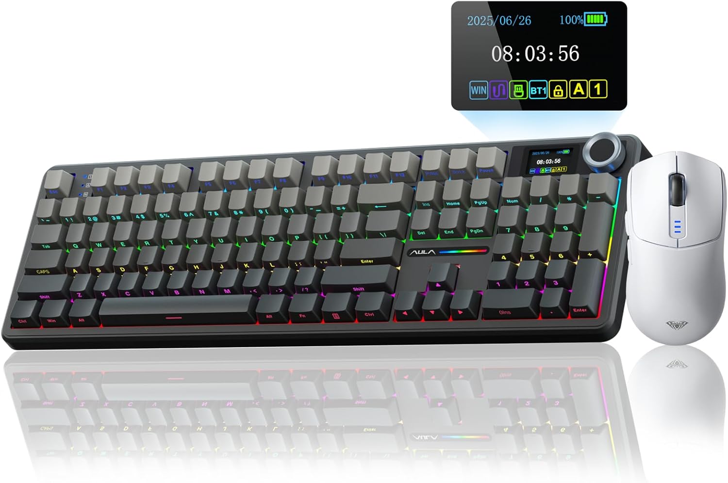 AULA F108 PRO Wireless Mechanical Keyboard with Screen & Knob+AULA SC580 Tri-Mode Gaming Mouse(White)