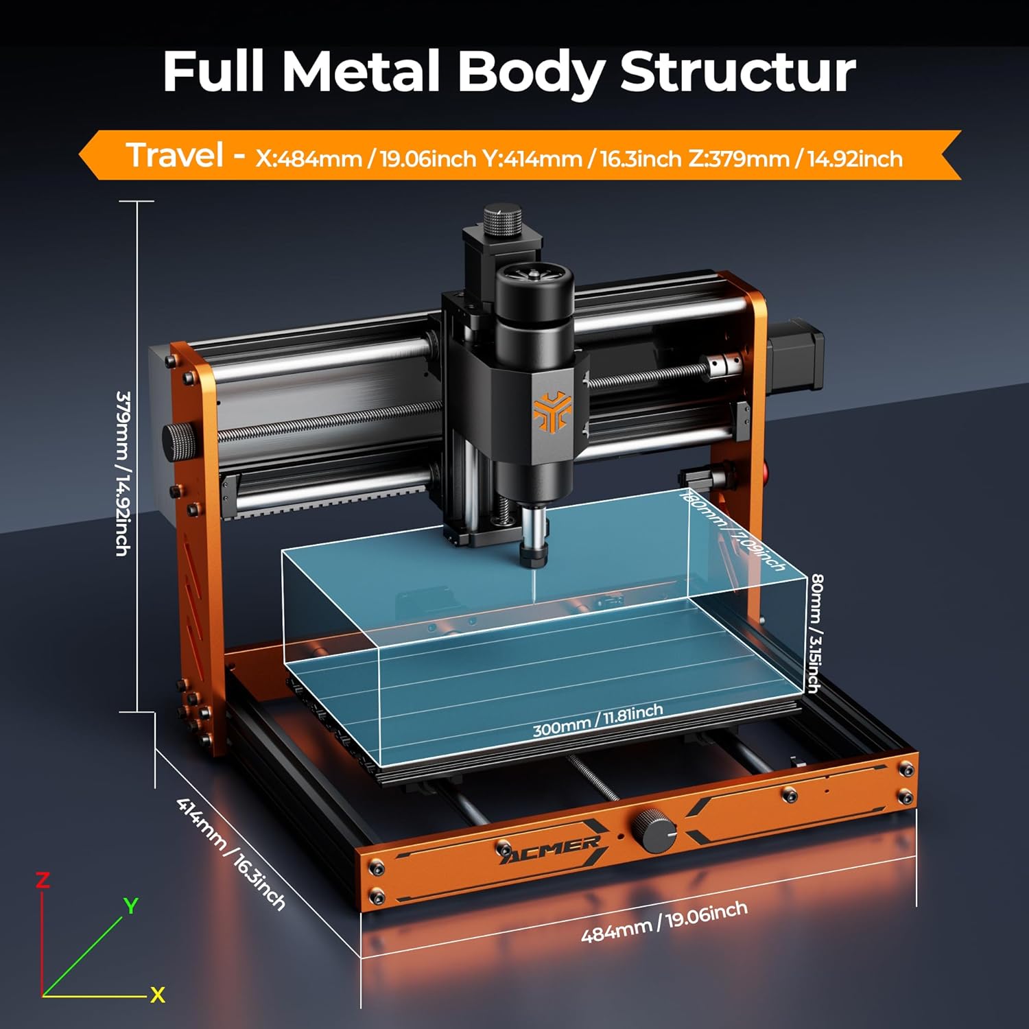 Spacious Workspace & Robust Construction: Features a practical 300x180x78mm working area. Constructed from high-strength aluminum alloy panels and extrusions, with a net weight of 11.5kg (approx. 25.4 lbs), ensuring exceptional rigidity and stability for small to medium-sized projects.