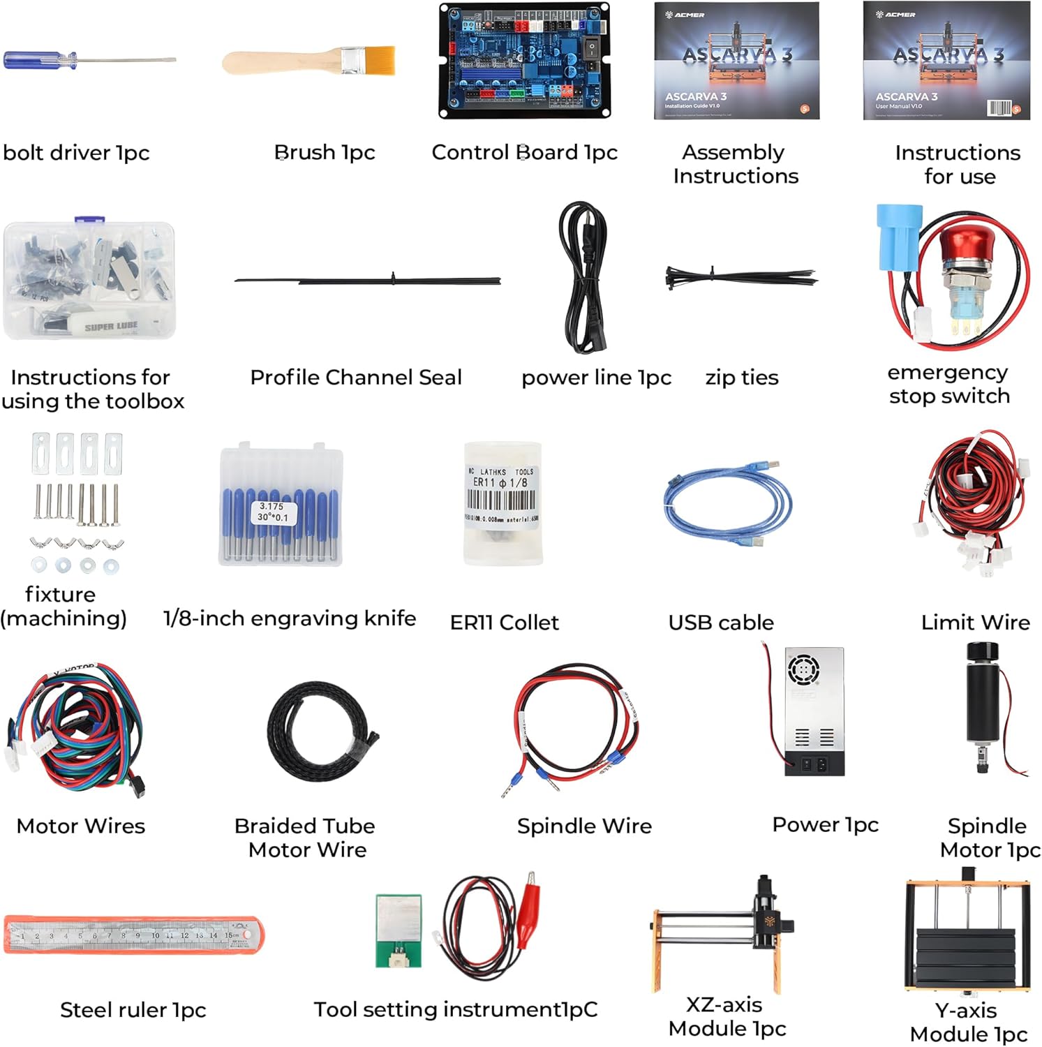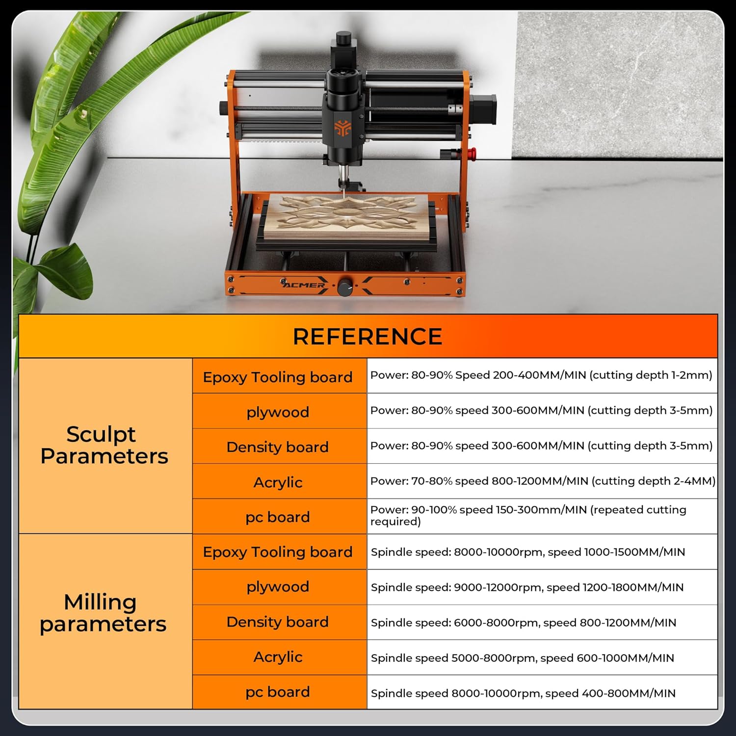 Safety Assurance & Practical Features: Includes an emergency stop switch and six limit switches for operational safety. Provides a detailed parameter table with recommended engraving/milling settings for various materials (RenShape, plywood, acrylic, PC board, etc.) to accelerate your workflow. Comes with a dedicated tool setter to simplify tool zeroing.