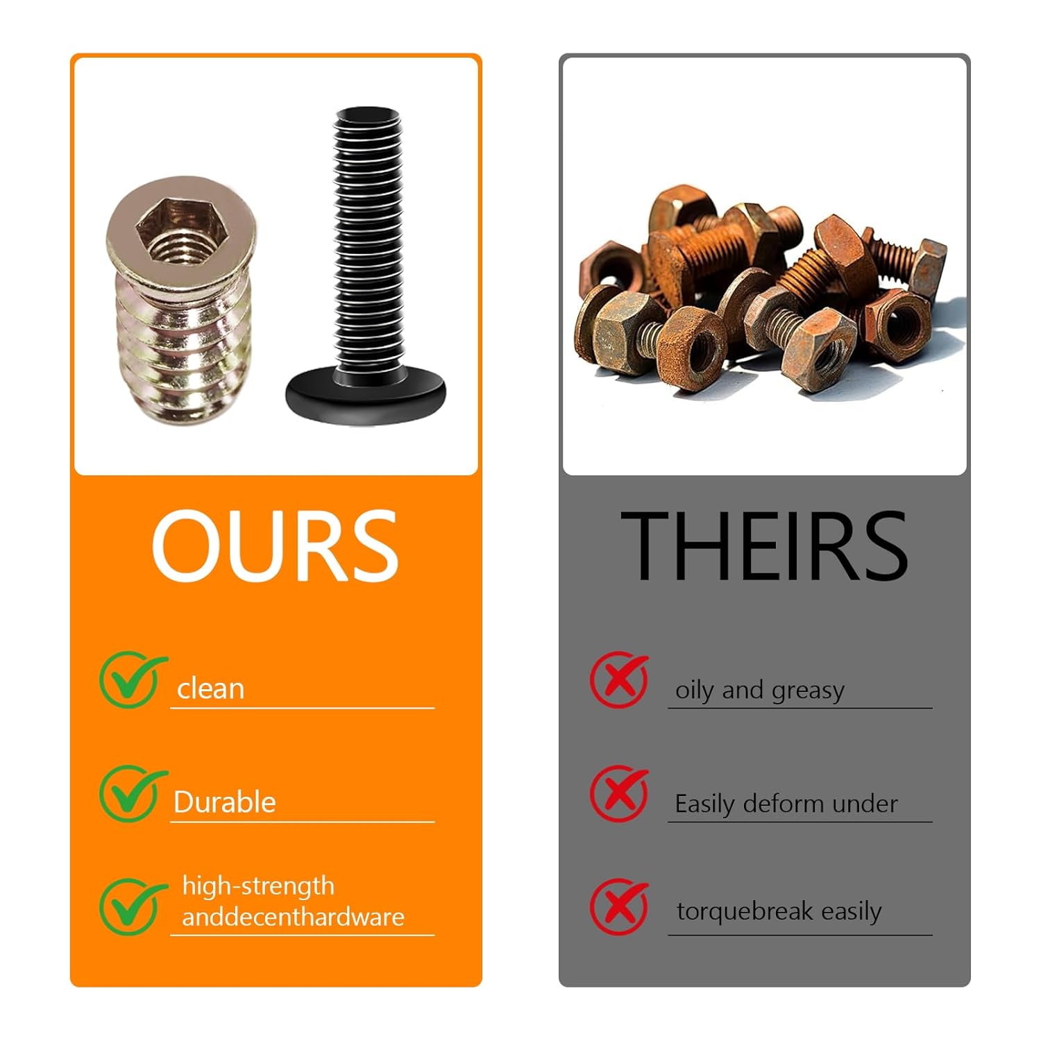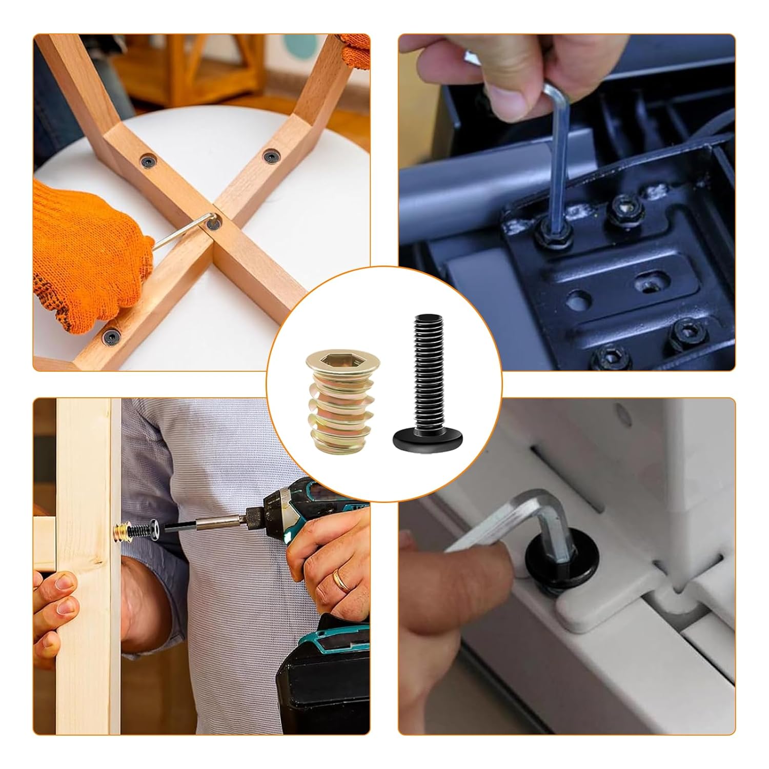Wide Application: The threaded inserts and bolts are suitable for materials such as cork, plywood, and fiberboard, making them an efficient tool for furniture assembly.