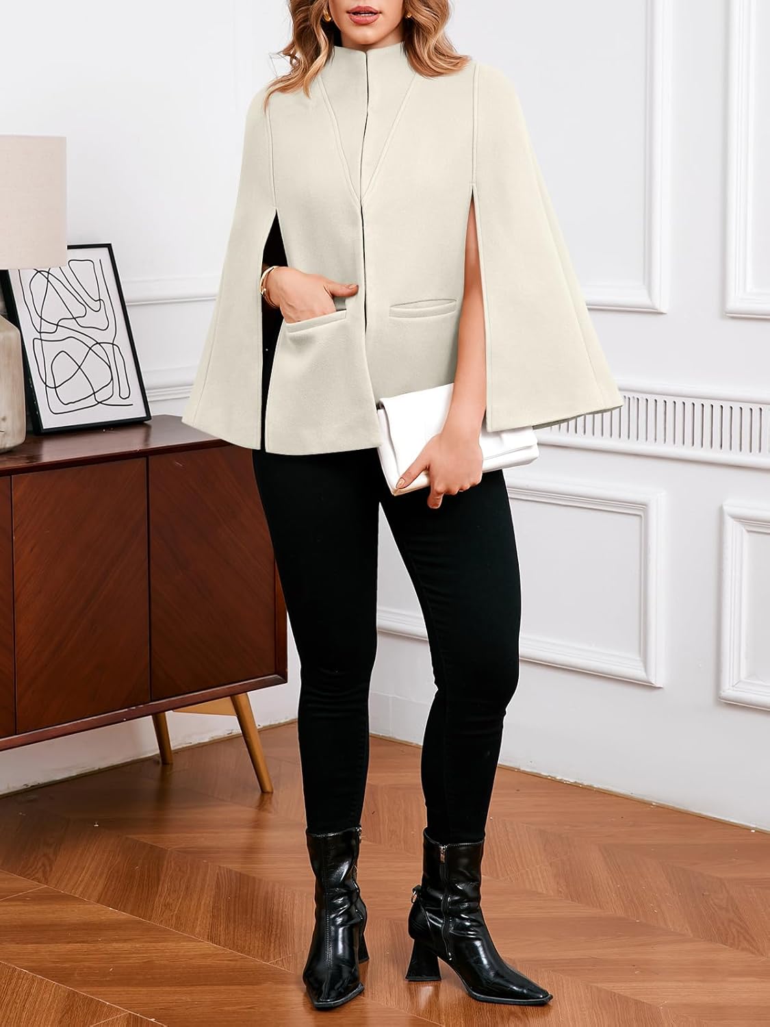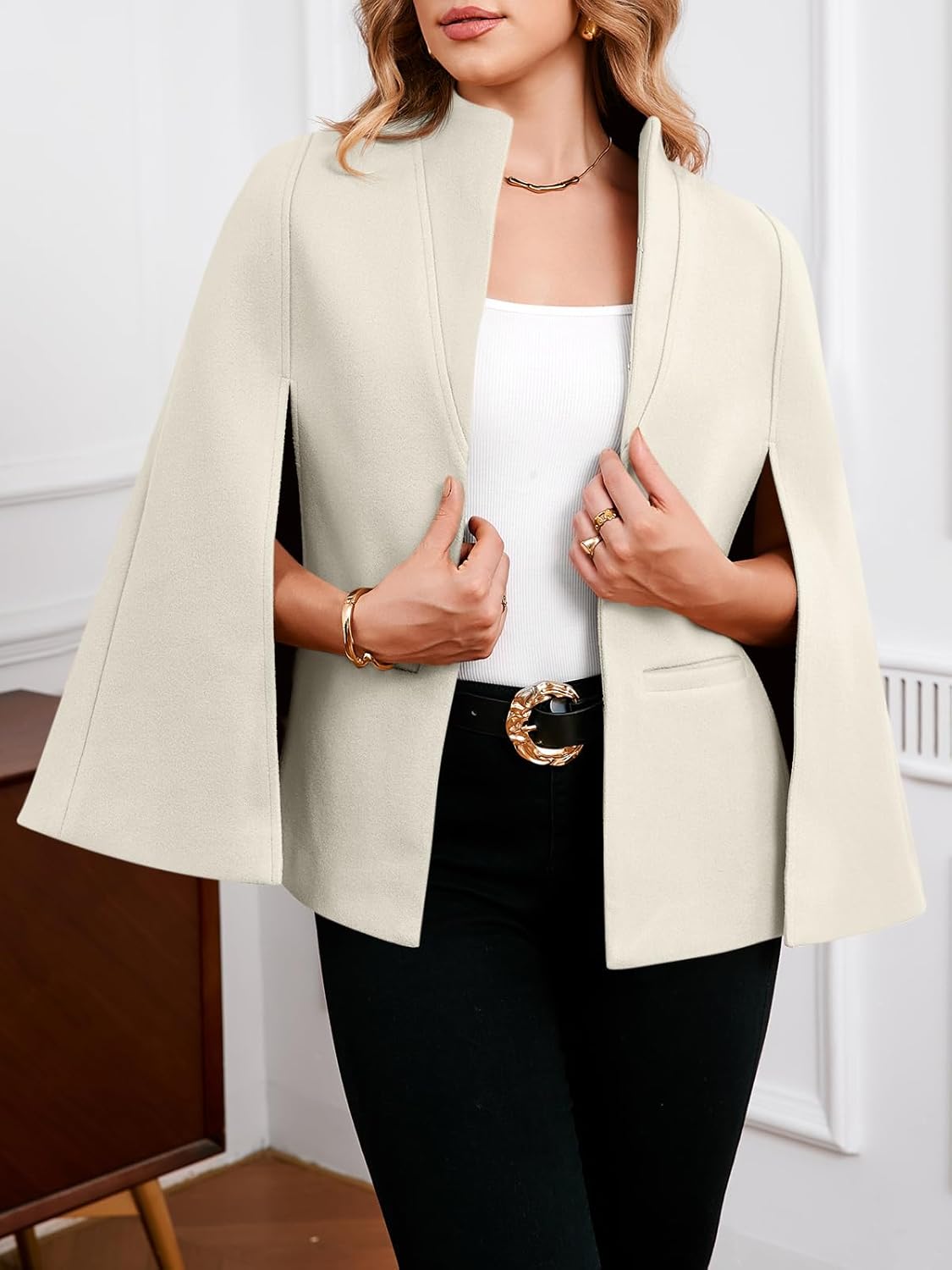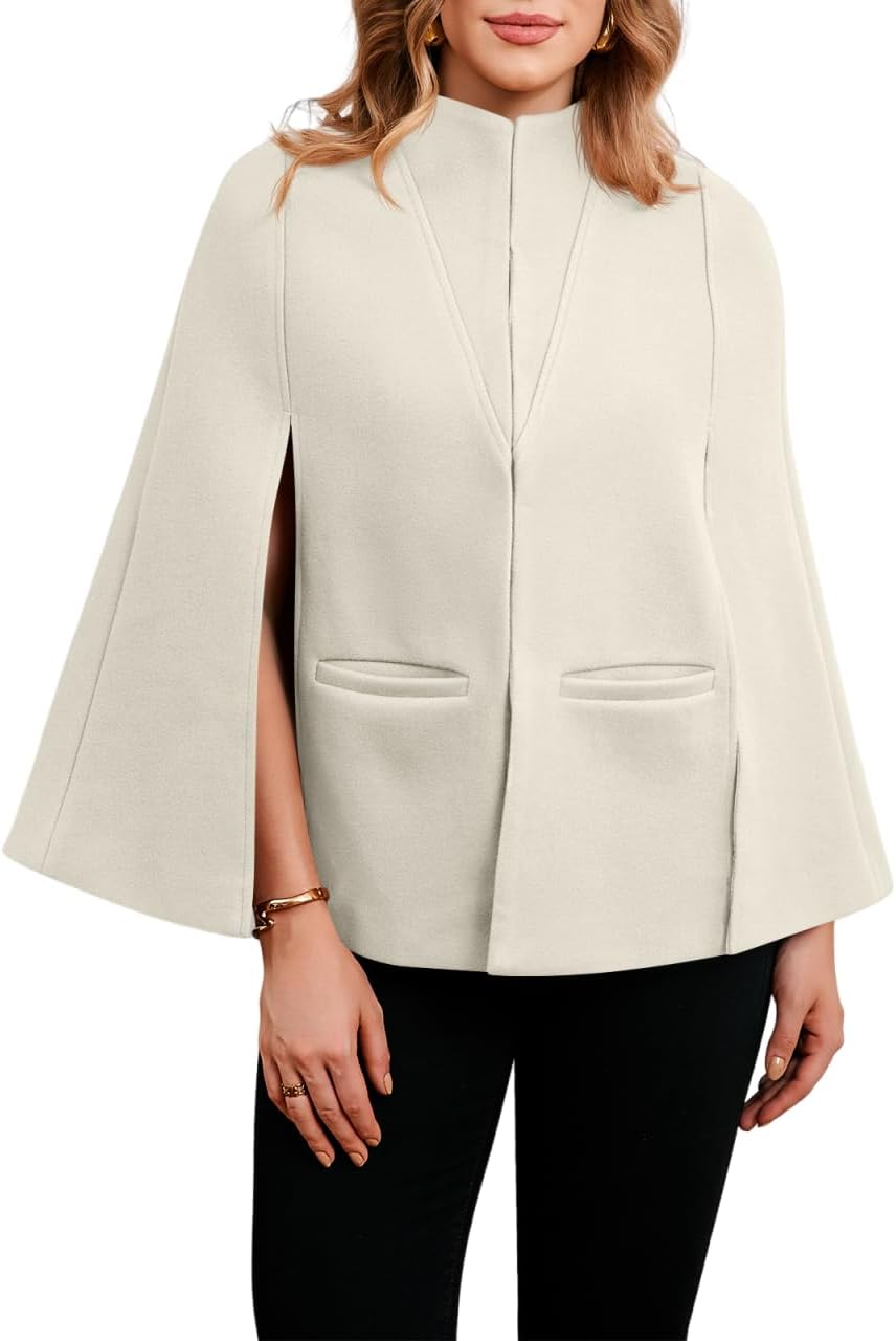 Cicy Bell Womens Cape Pea Coat Work Casual Split Long Sleeve Coat Stand Collar Open Front Fall jacket