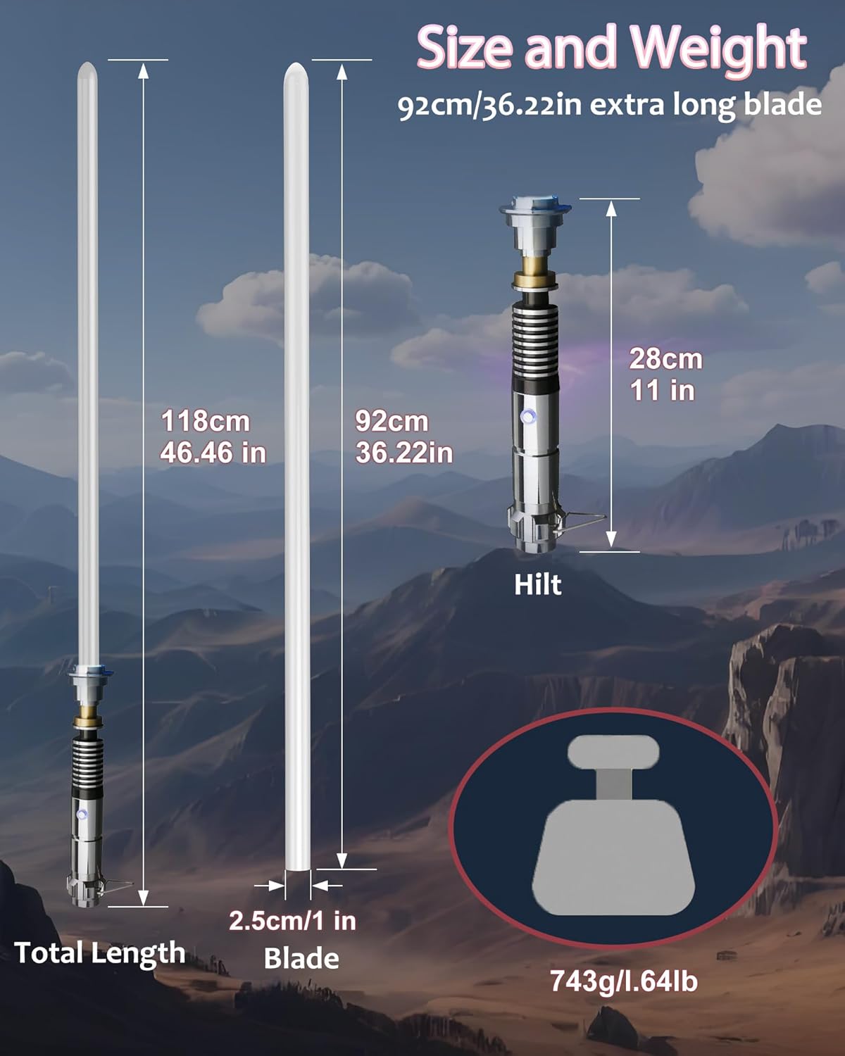 Real Heavy Dueling Lightsaber - Built to survive heavy dueling lightsabers combat. The hilt of the FX sabers was made of metal aluminum, fully consider the gravity effect of light sabers and comfortable grip due to nice polished, exquisite appearance with special hanging triangle ring design. Equipped with 92cm/36.22in high-impact and high-transparency PC Blade, not easy to fold or bend, resistant to blows, supporting heavy dueling. Get ready to feel like a true Jedi or Sith Lord with this lightsaber