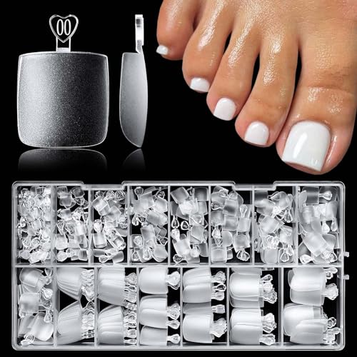 16 Sizes False Toe Nails: Press on toes includes 16 sizes, toenails press on nails different nail lengths and widths. Short toe nails press ons clear are marked with numbers to pick proper soft gel tips for your toes, acrylic toe nail press ons square ensure a perfect fit for every nail bed. Toes press on nails will provide you with tidy storage. Pedicure nails full cover are easy to operate, clear tips for nails toes suitable for techs and beginners. Press on acrylic toes ensure everyone can enjoy the beauty and convenience. Explore limitless toe nail art with toenail tips press ons.