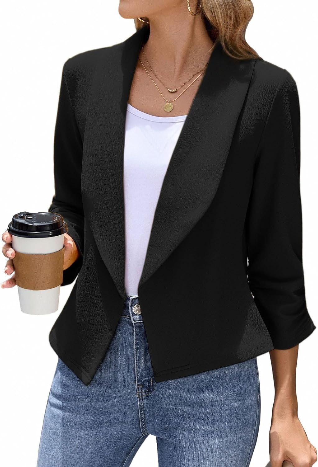Women's Blazer 3/4 Sleeve Open Front Blazers Slim Fit Casual Work Lightweight Suit Jacket