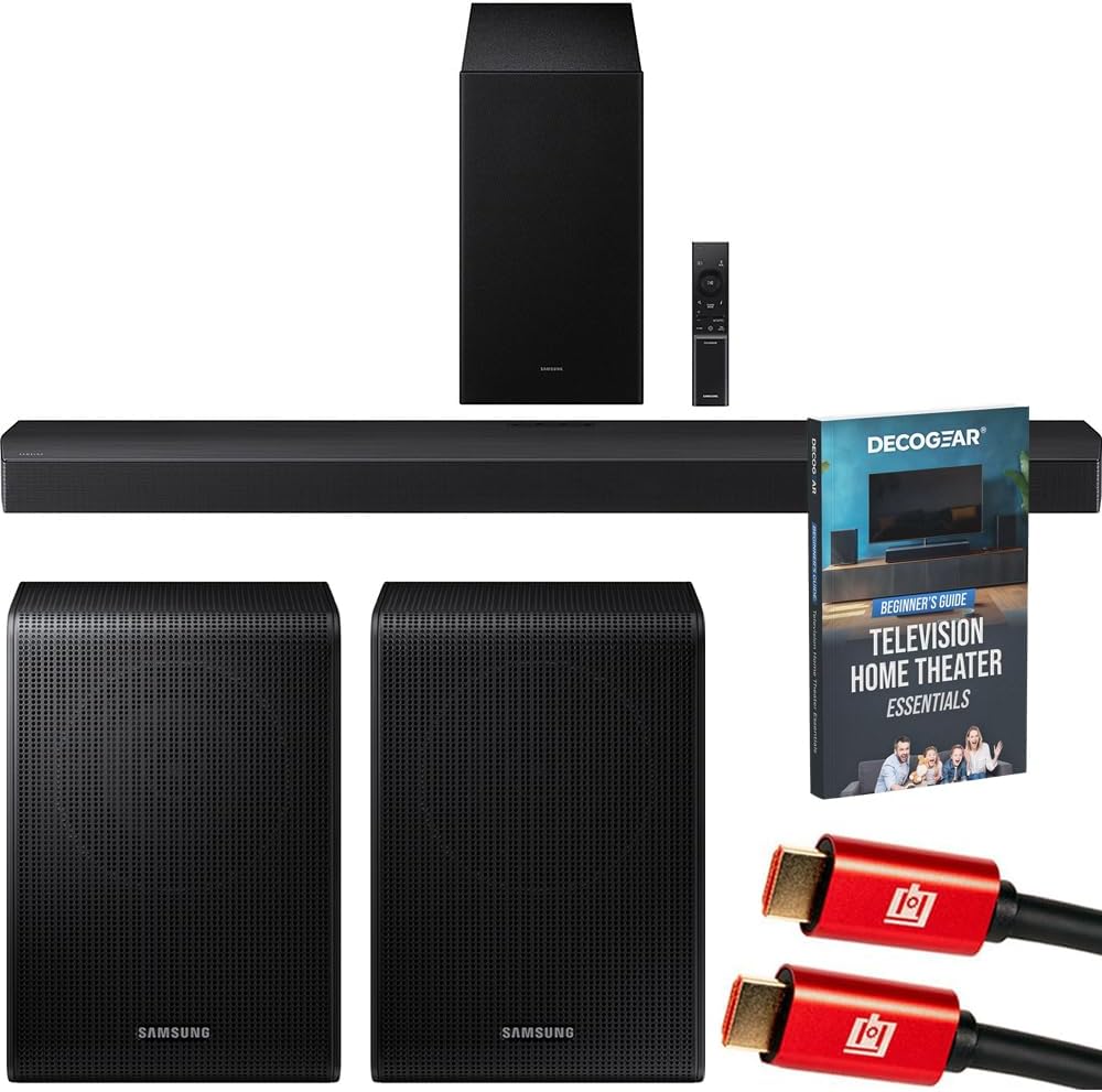 Samsung B-Series Soundbar HW-B750F 5.1 ch Subwoofer (2025) Bundle with SWA-9250S Wireless Rear Speakers, 2X 4K HDMI Cable and Deco Gear Complete Home Theater Beginner's Guidebook