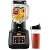 Oster Extreme Mix Blender, 64oz Glass Jar, 3 iBlend Preset Functions, 1600-Watts, 10-Point Blade Stack with Titanium Coating & 24oz Blend-N-Go Cup