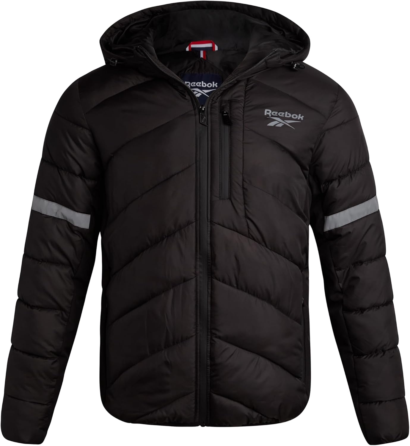 Reebok Mens Winter Jacket - Water Resistant Heavy Puffer Coat with Hood - Quilted Insulated Warm Winter Coat for Men
